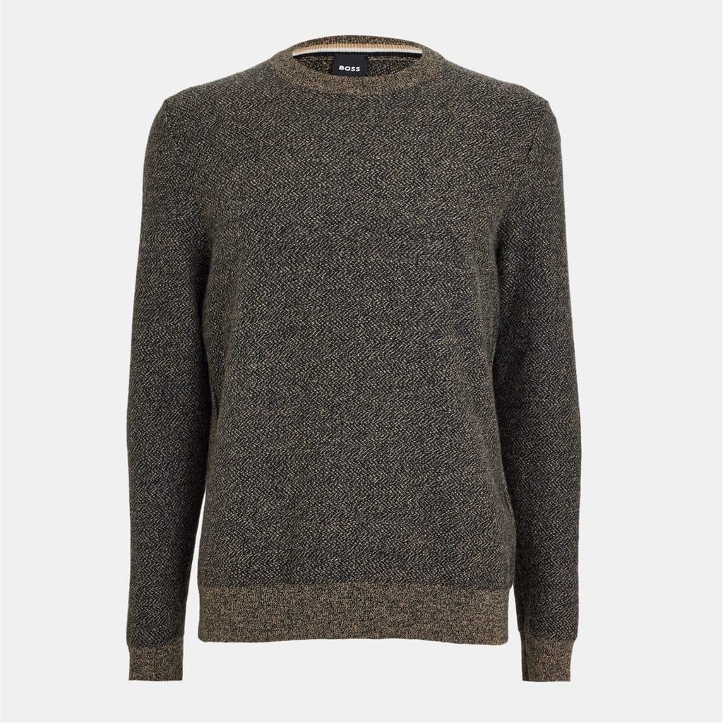This Boss top features a herringbone pattern and a crew neck design. It comes with long sleeves and a regular fit, ensuring comfort and style. The ribbed cuffs add a touch of detail to this elegant piece. -