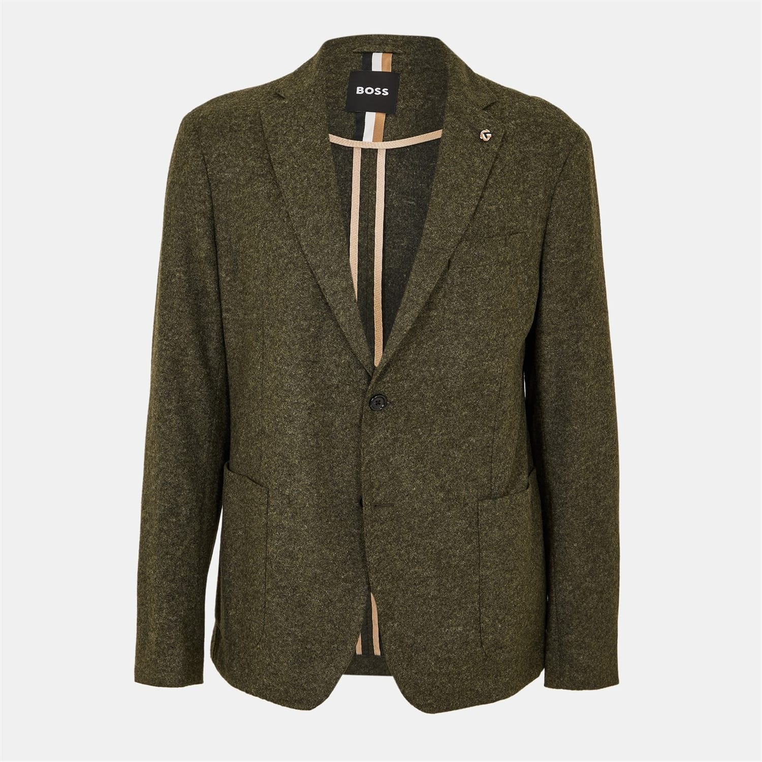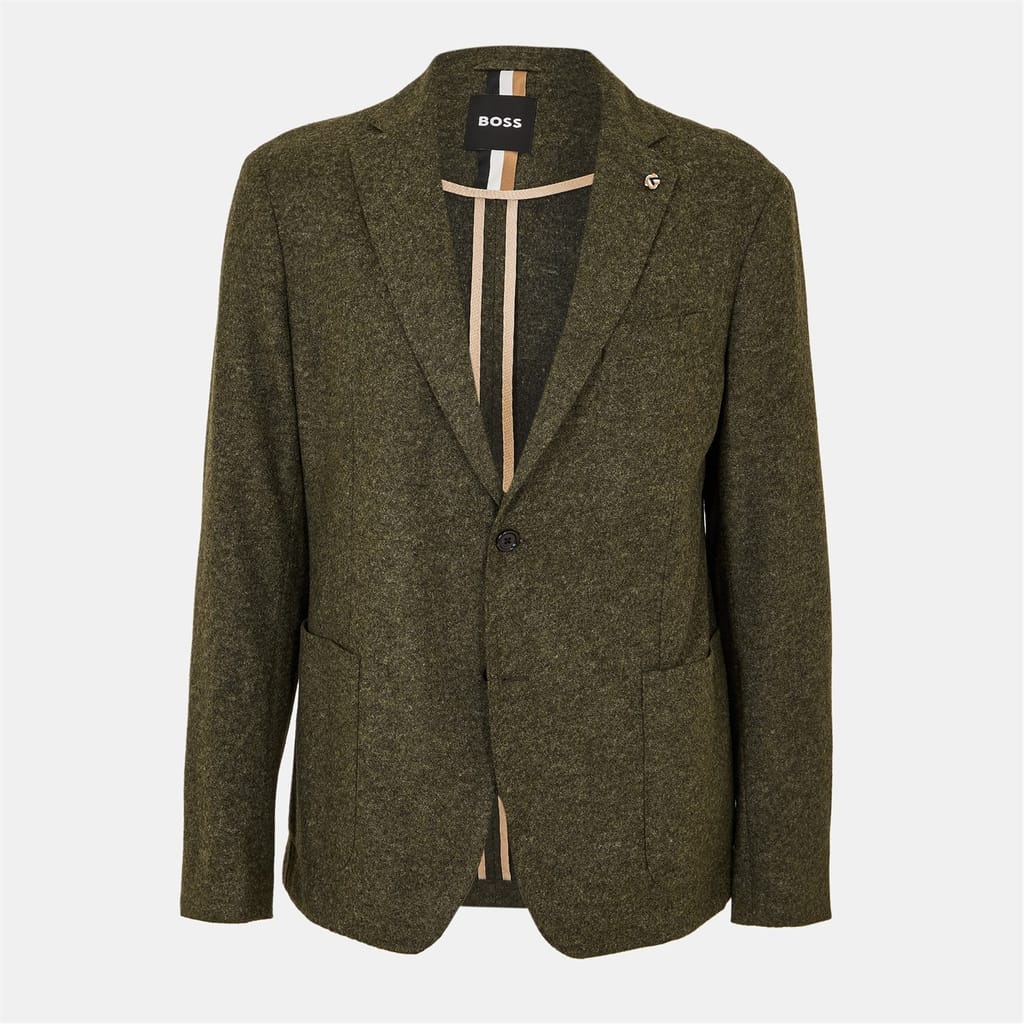 This Boss suit jacket features a notch collar and a straight hem, offering a regular fit. The heathered pattern adds a subtle texture, while the button closure ensures a classic look. A discreet logo embellishment completes the design, making it a refined choice for formal occasions. -