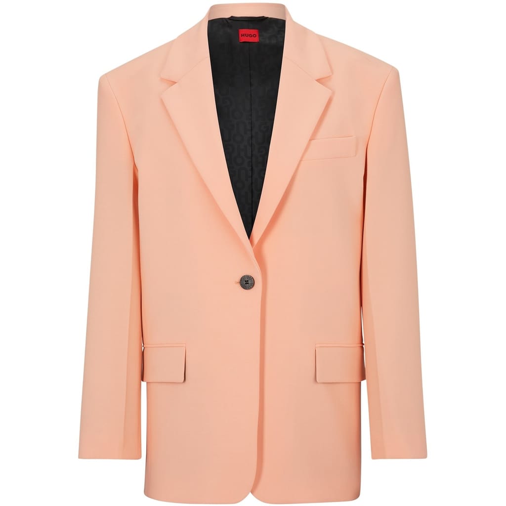 Elevate your professional wardrobe with the Hugo blazer, part of the workwear collection. This solid piece features a lapel collar and a straight hem, offering a regular fit. The single-button closure adds a touch of sophistication, while the practical pockets enhance functionality. Ideal for a polished office look. -