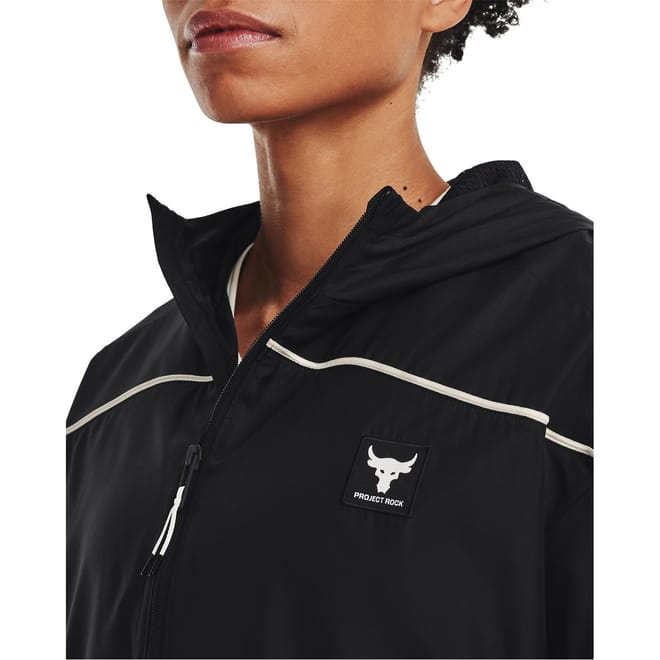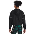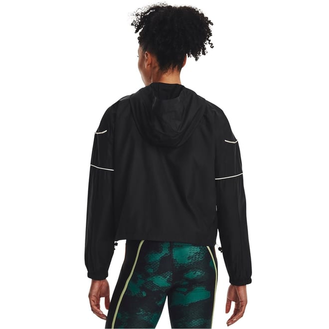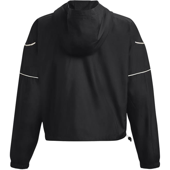 This Under Armour top is designed for activewear and gym enthusiasts. Featuring a hooded neck and long sleeves, it offers a relaxed fit with a zipper closure. The solid pattern is complemented by a logo and reflective trim, making it suitable for all seasons. Elasticated cuffs add to its performance attributes. -