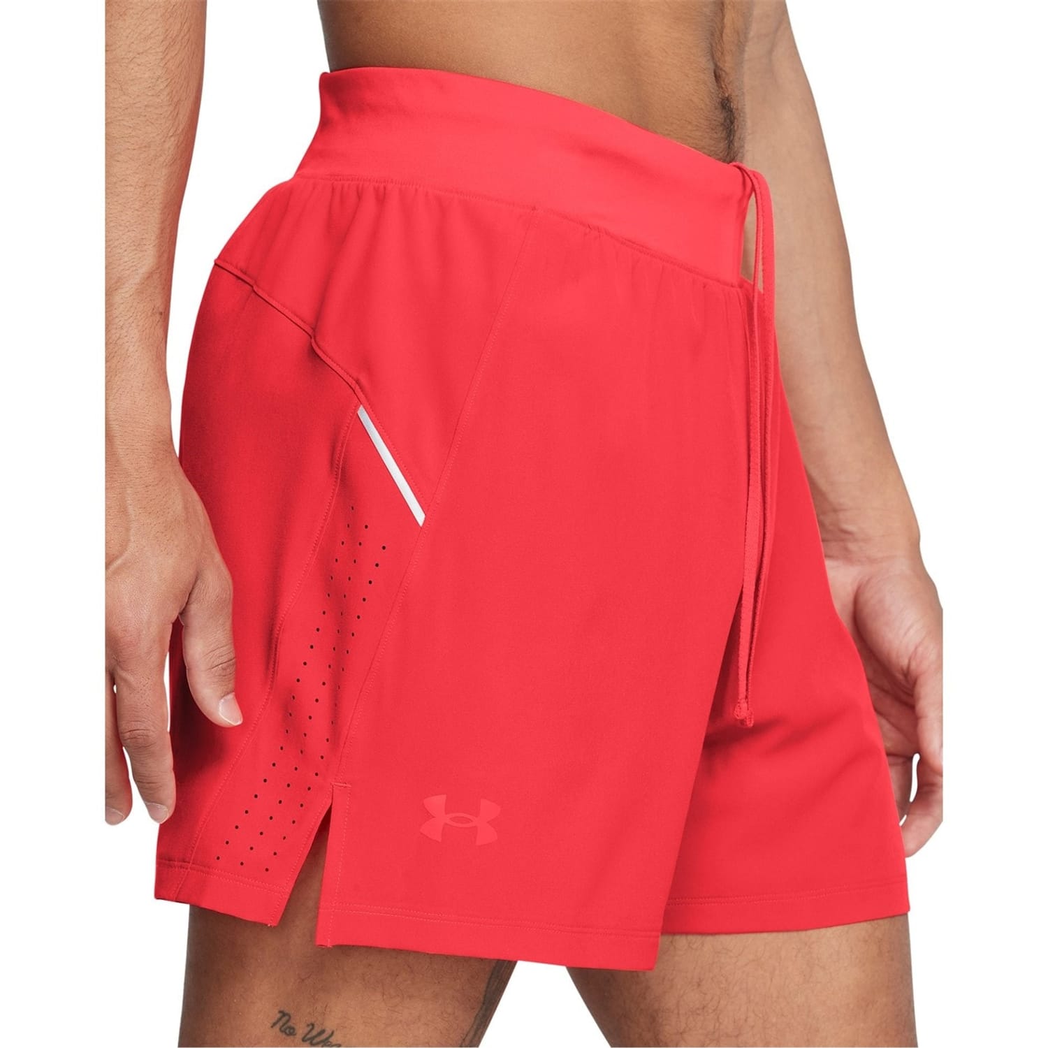 Under Armour shorts designed for performance and activewear. These solid bermuda shorts feature a drawstring closure and are ideal for running. The design includes a logo and mesh pocket, enhancing functionality and style. Perfect for those seeking comfort and practicality in their athletic wardrobe. -