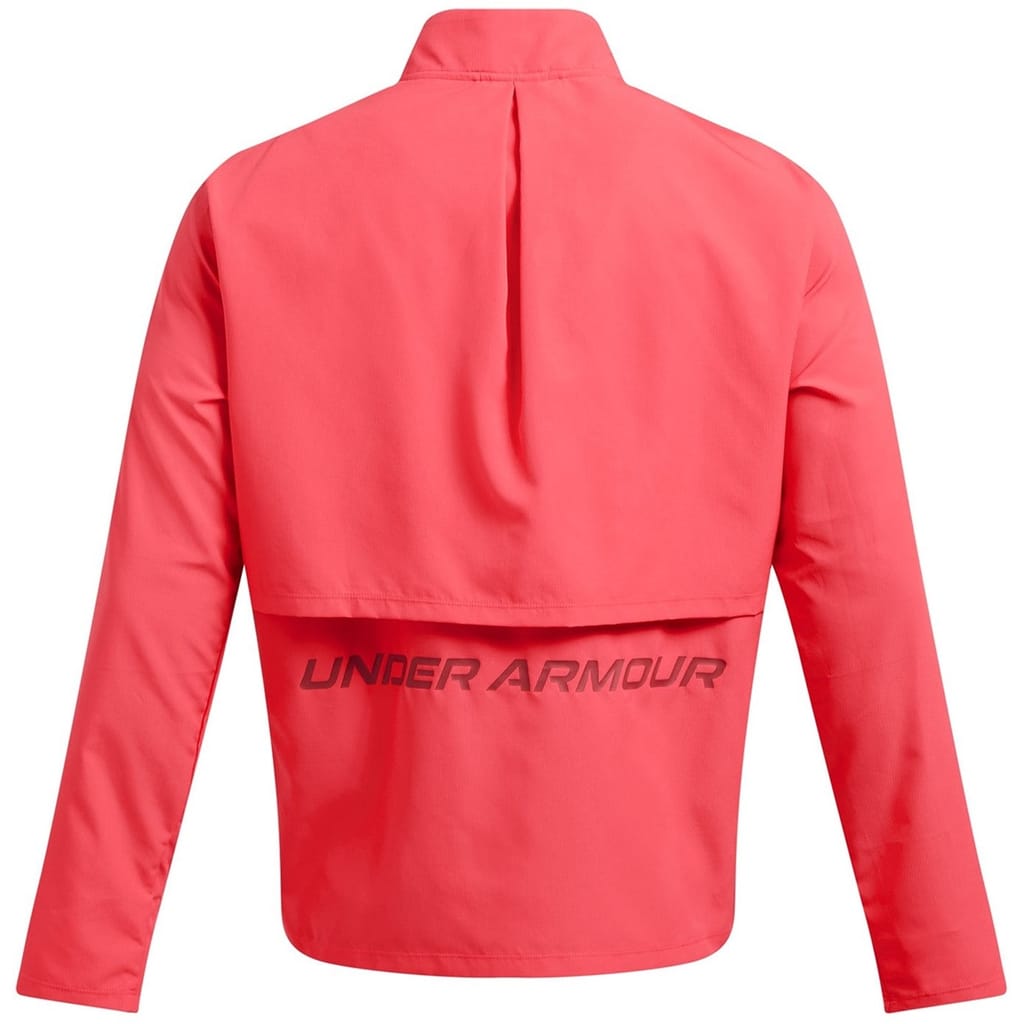 The Under Armour Storm Run Jacket is designed for performance, featuring a zip neck and a straight hem. This regular fit jacket is part of the activewear collection, showcasing a solid pattern with a logo embellishment. Ideal for those seeking functionality and style in their athletic wear. -
