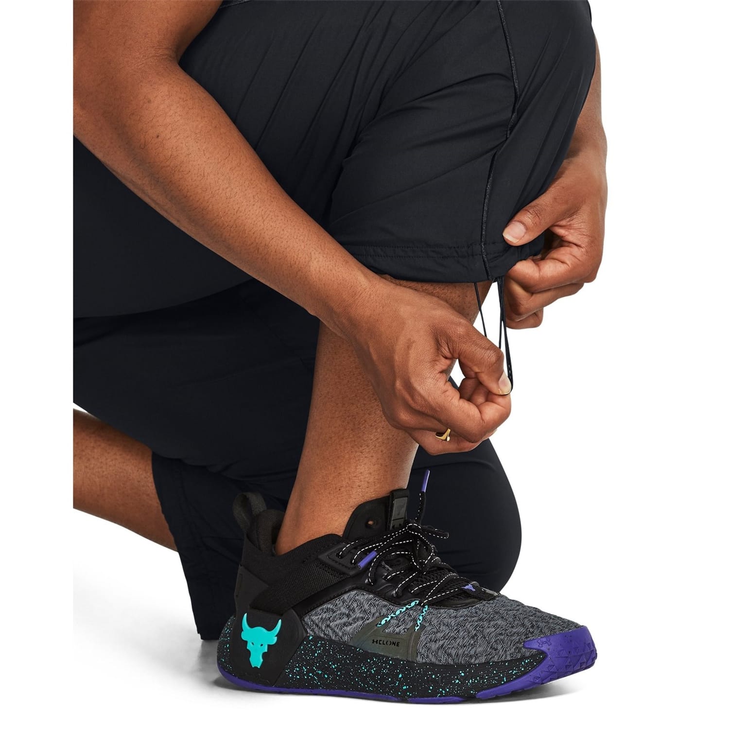 Discover Under Armour's Project Rock cargo trousers, designed for casual comfort and style. These wide-leg pants feature a drawstring closure for a secure fit and are adorned with a distinctive logo embellishment. Perfect for those seeking a blend of functionality and fashion in their everyday wardrobe. -