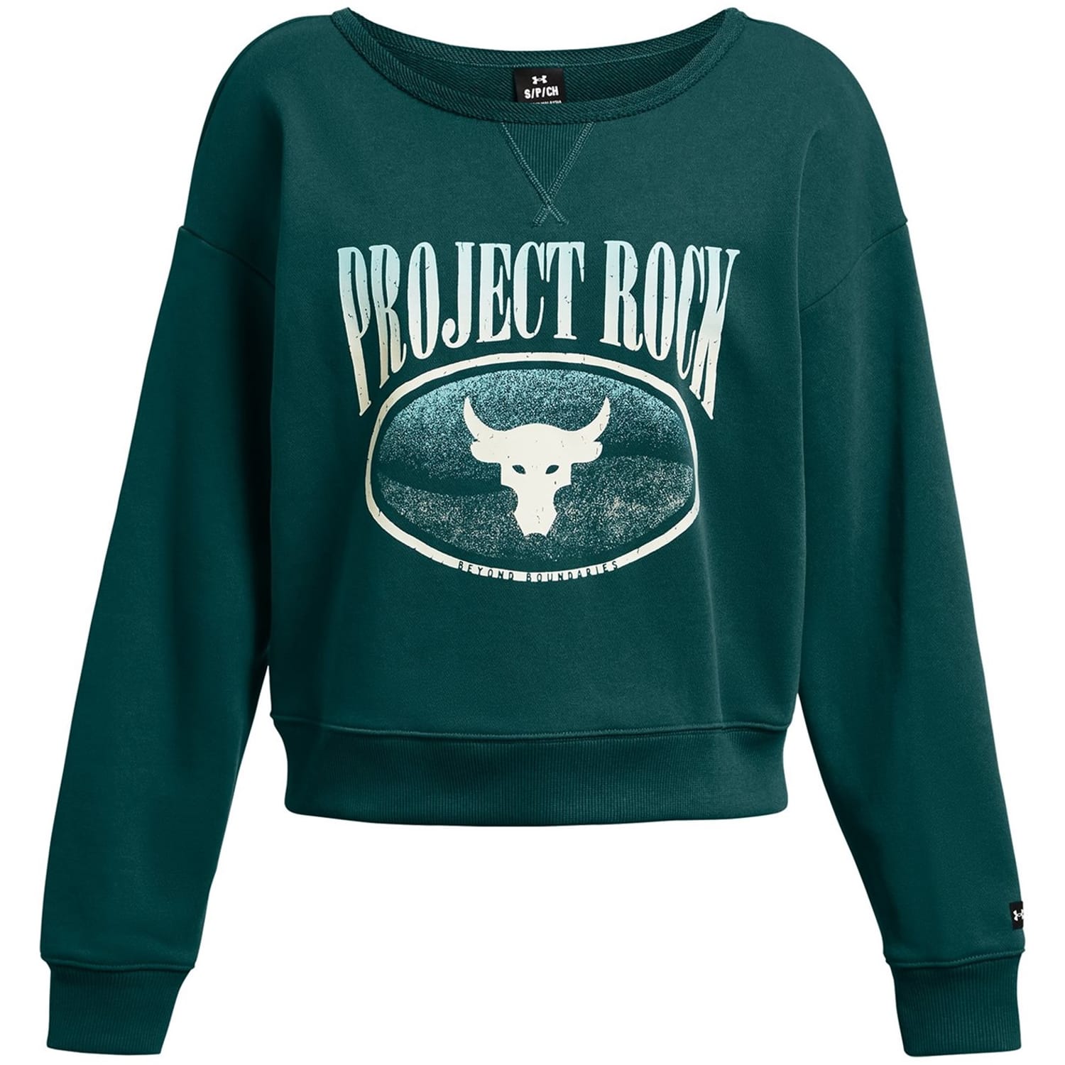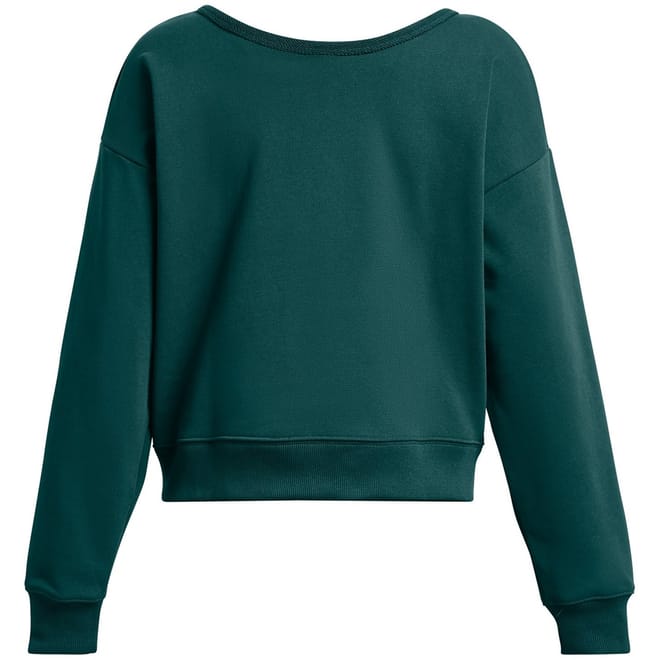 This Under Armour terry top is designed for casual wear, featuring a relaxed fit with long sleeves and drop shoulders. The crew neck and ribbed cuffs add to its comfort, while the graphic print and logo embellishment provide a stylish touch. -
