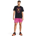 Under Armour shorts designed for performance and style. These bermuda shorts feature a marble print and are part of the activewear collection. Equipped with a drawstring closure, they offer a comfortable fit. The shorts include a logo and side pockets for added functionality, making them ideal for running and casual activities. -