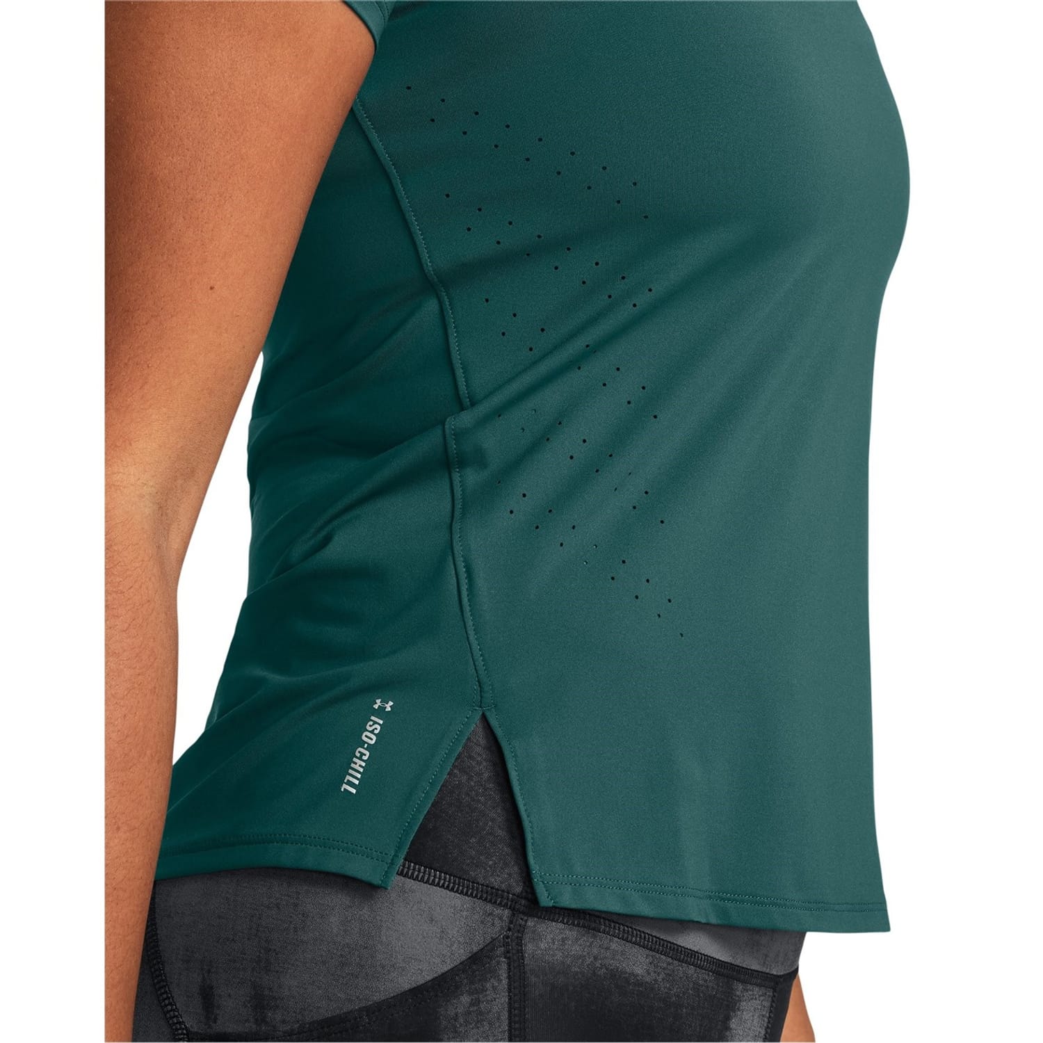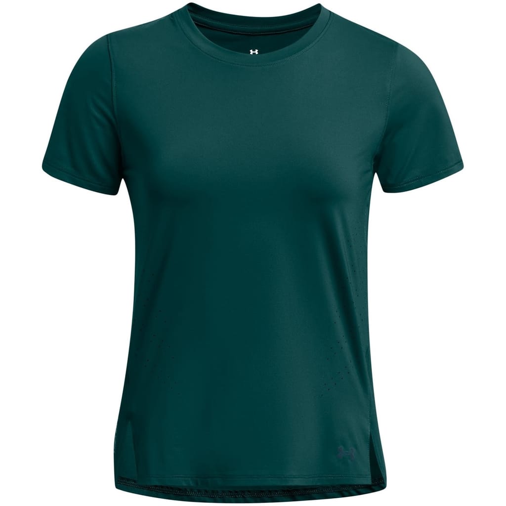 Discover the Under Armour launch top, designed for performance. This activewear piece features a crew neck and short sleeves, offering a regular fit. The solid pattern is complemented by a subtle logo embellishment, making it a versatile addition to your wardrobe. -