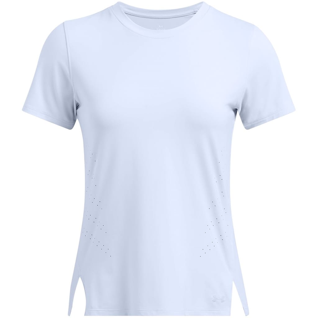 Discover the Under Armour launch top, designed for performance. This activewear piece features a crew neck and short sleeves, offering a regular fit. The solid pattern is complemented by a subtle logo embellishment, making it a versatile addition to your wardrobe. -