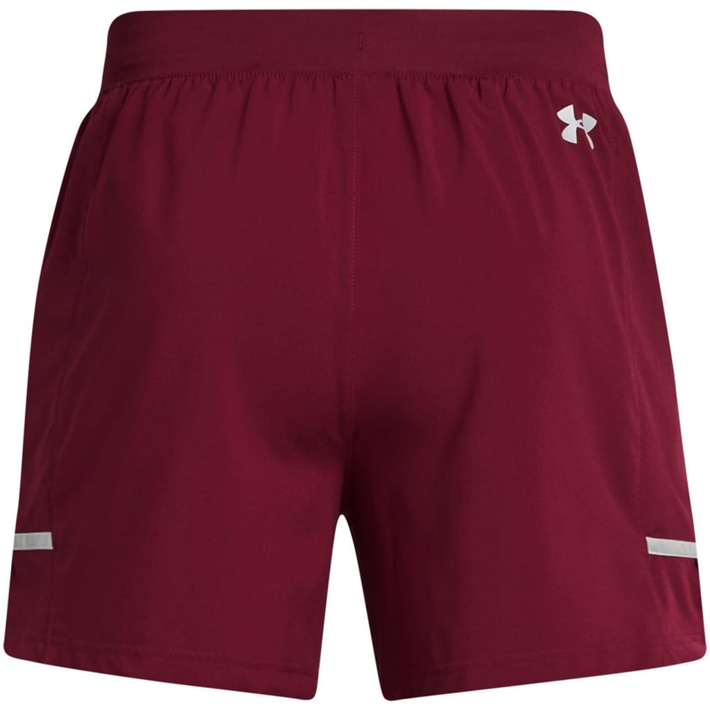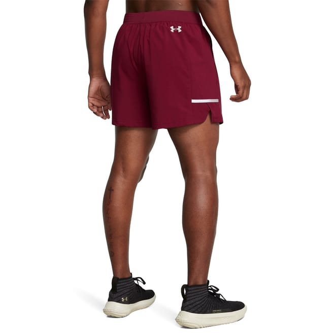 Under Armour shorts designed for activewear enthusiasts. These solid bermuda shorts feature a performance-focused design with a drawstring closure and an elasticated waistband for a secure fit. The reflective trim and logo embellishments enhance visibility, making them ideal for running. Part of the casual and activewear collections, these shorts offer both style and functionality. -