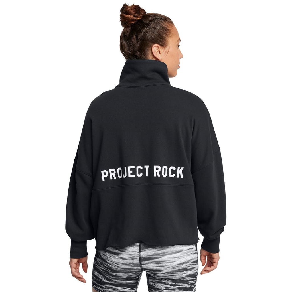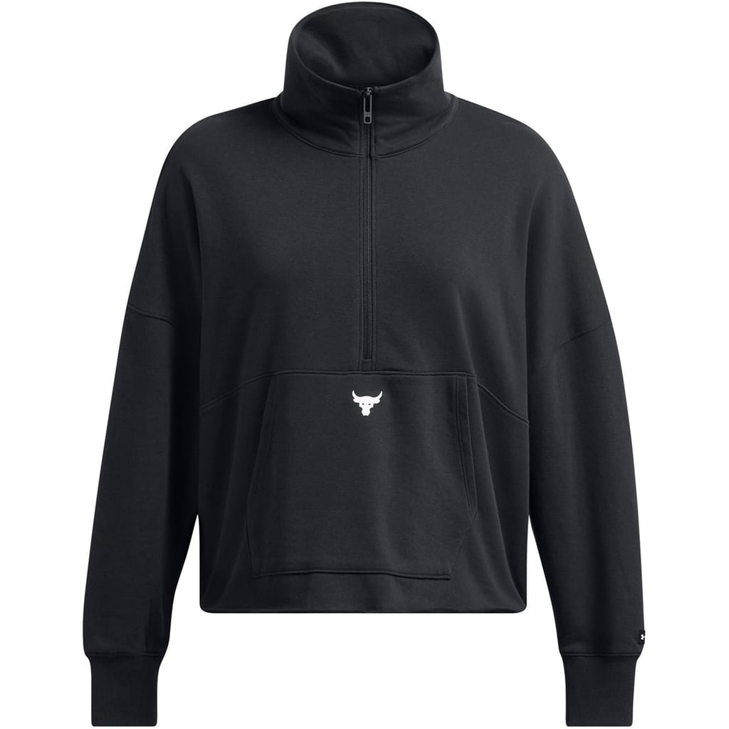 This Under Armour top from the outerwear collection features a relaxed fit with a funnel neck and a convenient zipper closure. The long sleeves have a drop shoulder design and ribbed cuffs, adding to its comfort. The solid pattern is complemented by a subtle logo embellishment, making it a versatile addition to your wardrobe. -