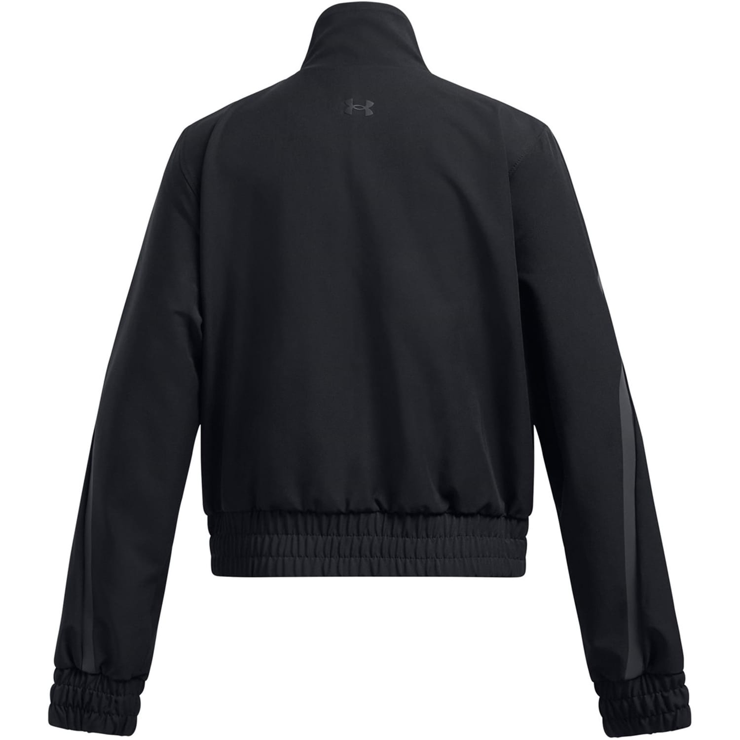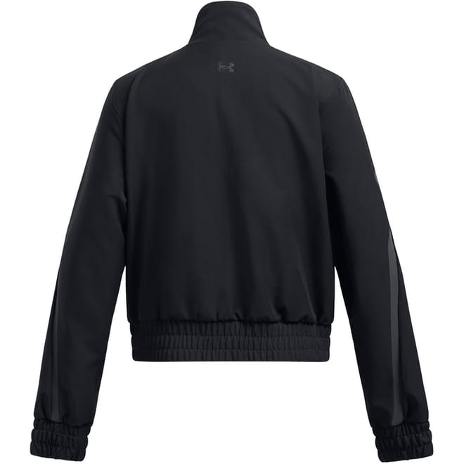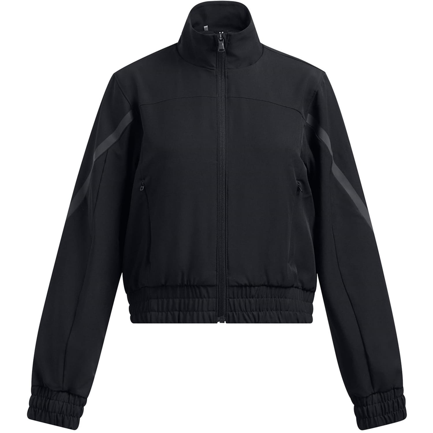 This Under Armour training jacket from the activewear collection is designed for performance. It features a relaxed fit with a solid pattern and a zipper closure. The jacket includes a ribbed cuff and an elasticated hem, providing comfort and flexibility. The logo embellishment adds a touch of brand identity to this versatile piece. -