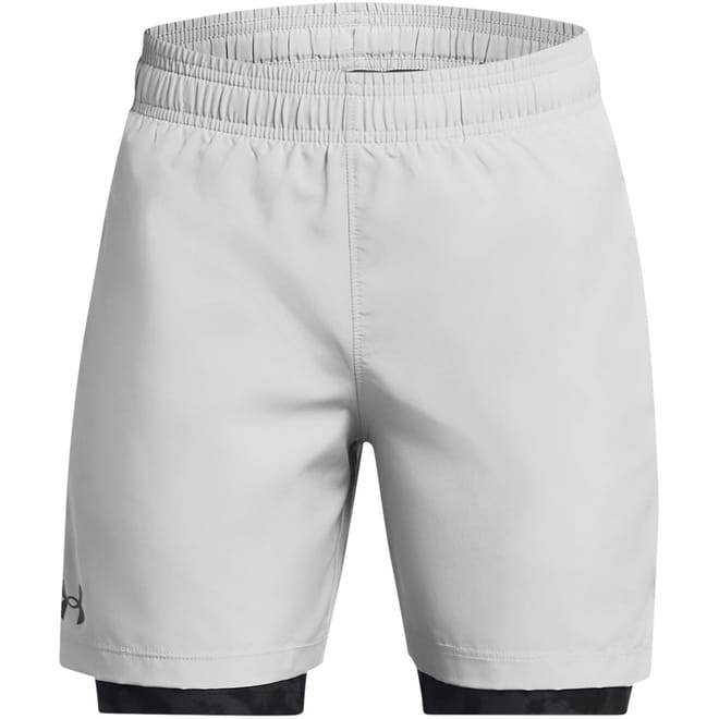 Under Armour presents these solid bermuda shorts, perfect for active children. Designed with an elasticated waistband and inner drawstring, these running shorts offer a comfortable fit. Featuring inner shorts and a two-in-one design, they are ideal for gym and activewear collections. The woven fabric and UA Tech attributes ensure performance, while the logo adds a stylish touch. -