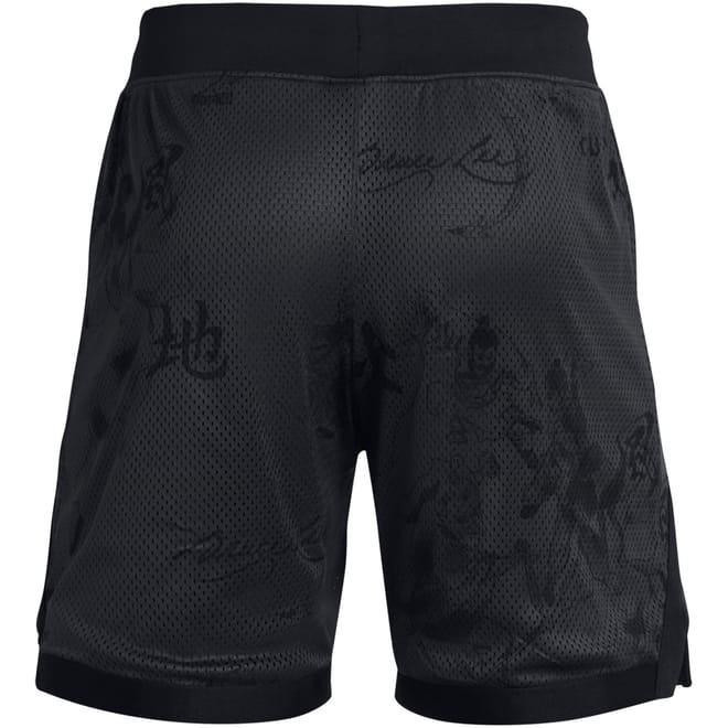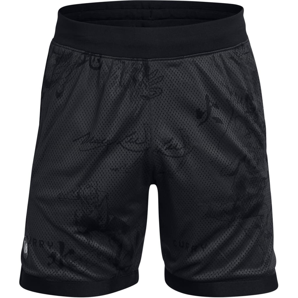 Under Armour shorts designed for both casual and athletic pursuits. These basketball shorts feature a graphic print and a drawstring closure for a secure fit. Embellished with a logo and practical side zip pockets, they are part of the activewear collection, ideal for sporting activities. -