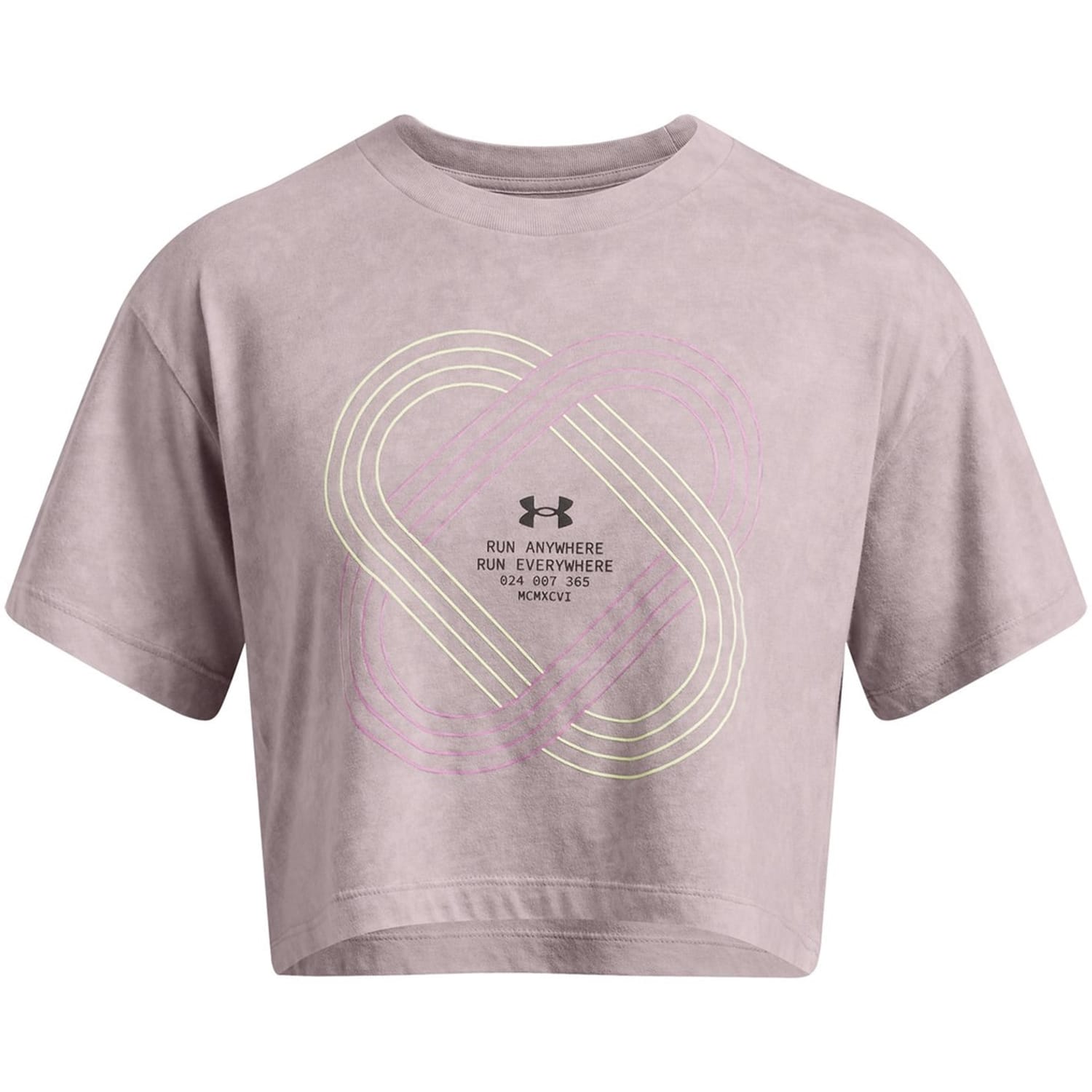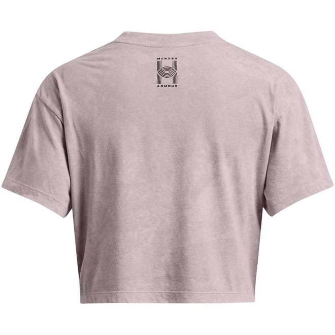 This Under Armour cropped top is designed for performance, making it ideal for your run. Featuring a crew neck and short sleeves, it offers a relaxed fit for comfort. The solid pattern and logo embellishment add a touch of style. Perfect for spring, summer, and all-season wear, this top is part of the activewear collection. -