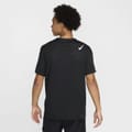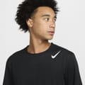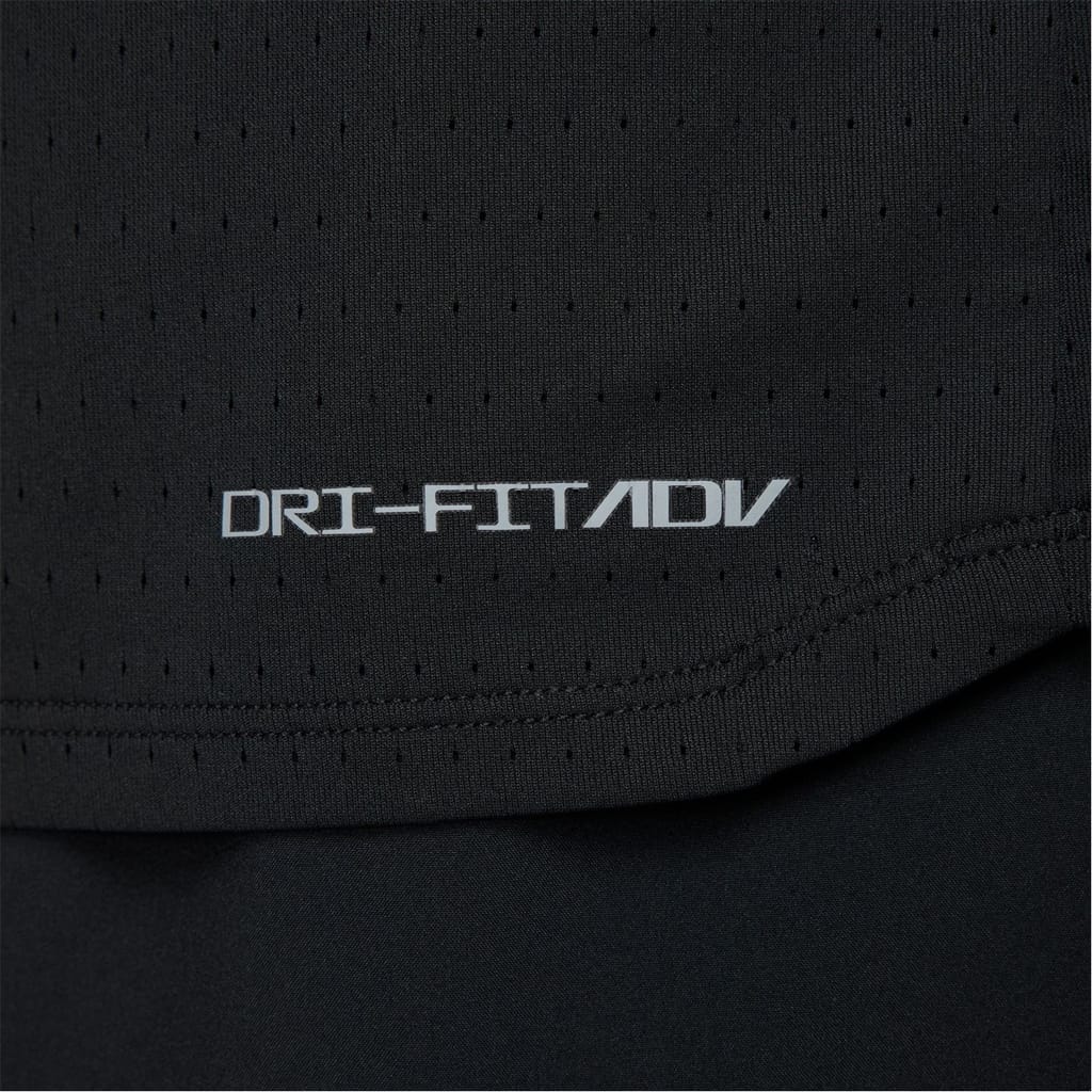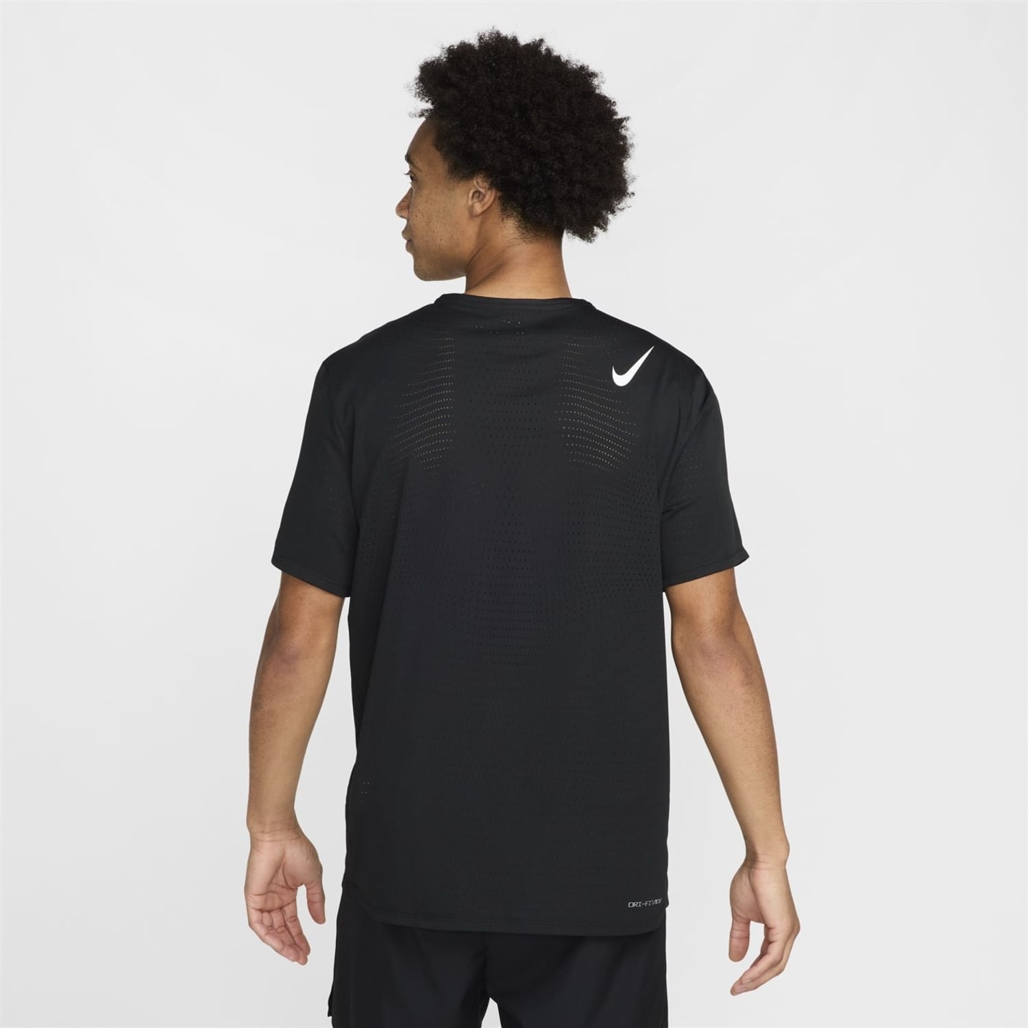 The Nike Aero top is designed for performance with a solid pattern and a crew neck. It features a regular fit and short sleeves, complemented by a straight hem. The top is adorned with a logo, adding a touch of brand identity. -