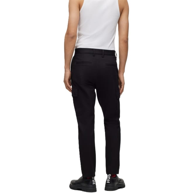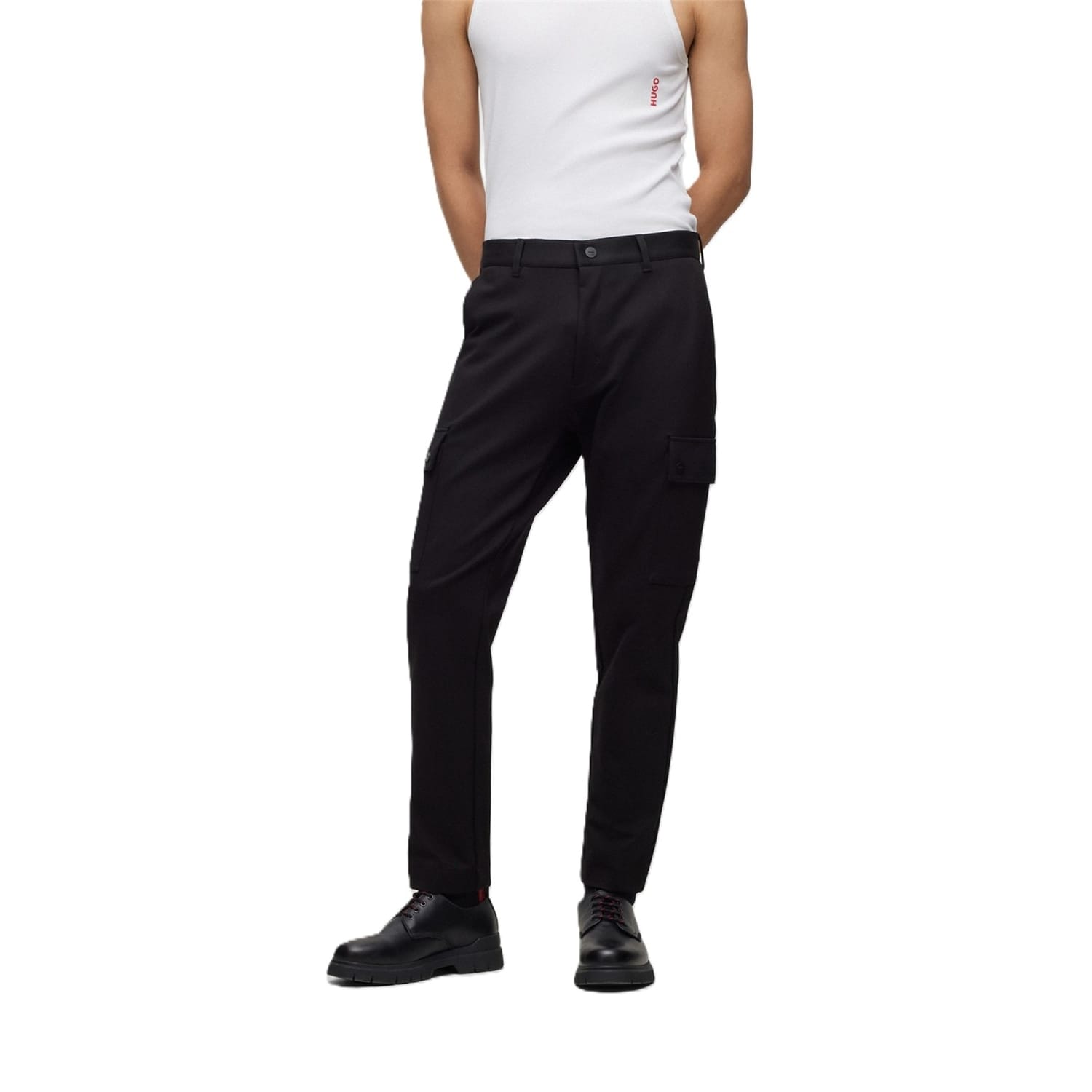 Hugo cargo pants offer a stylish and functional choice for casual wear. Featuring a zip fly closure with button and belt loops, these trousers are designed for a slim fit. The cargo style is enhanced with practical pockets, making them a versatile addition to any wardrobe. -