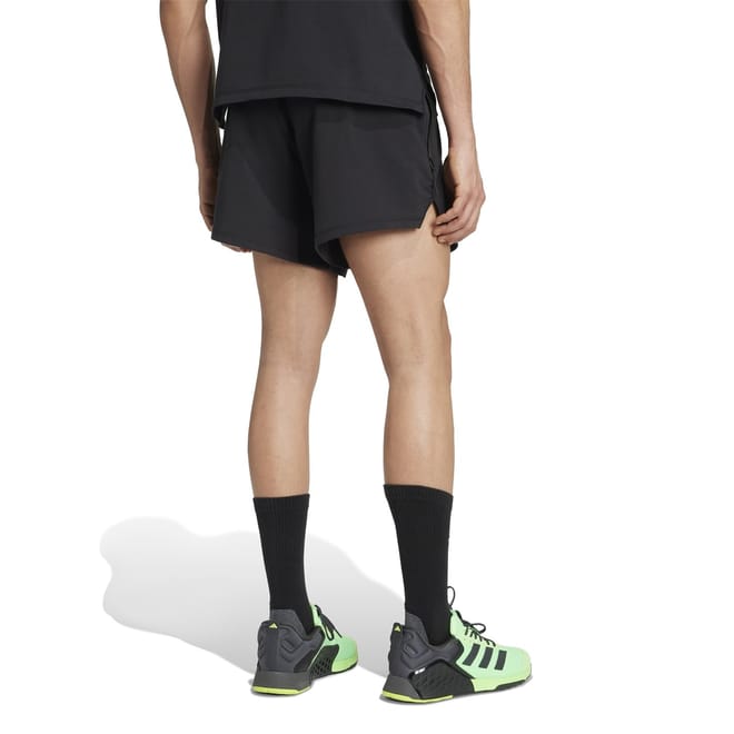 These adidas bermuda shorts are designed for both casual and athletic pursuits. Featuring a solid pattern and an elasticated waistband, they offer a comfortable fit. The performance attributes make them ideal for fitness activities. Embellished with a logo and side pocket, these shorts are part of the casual collection, perfect for versatile wear. -