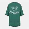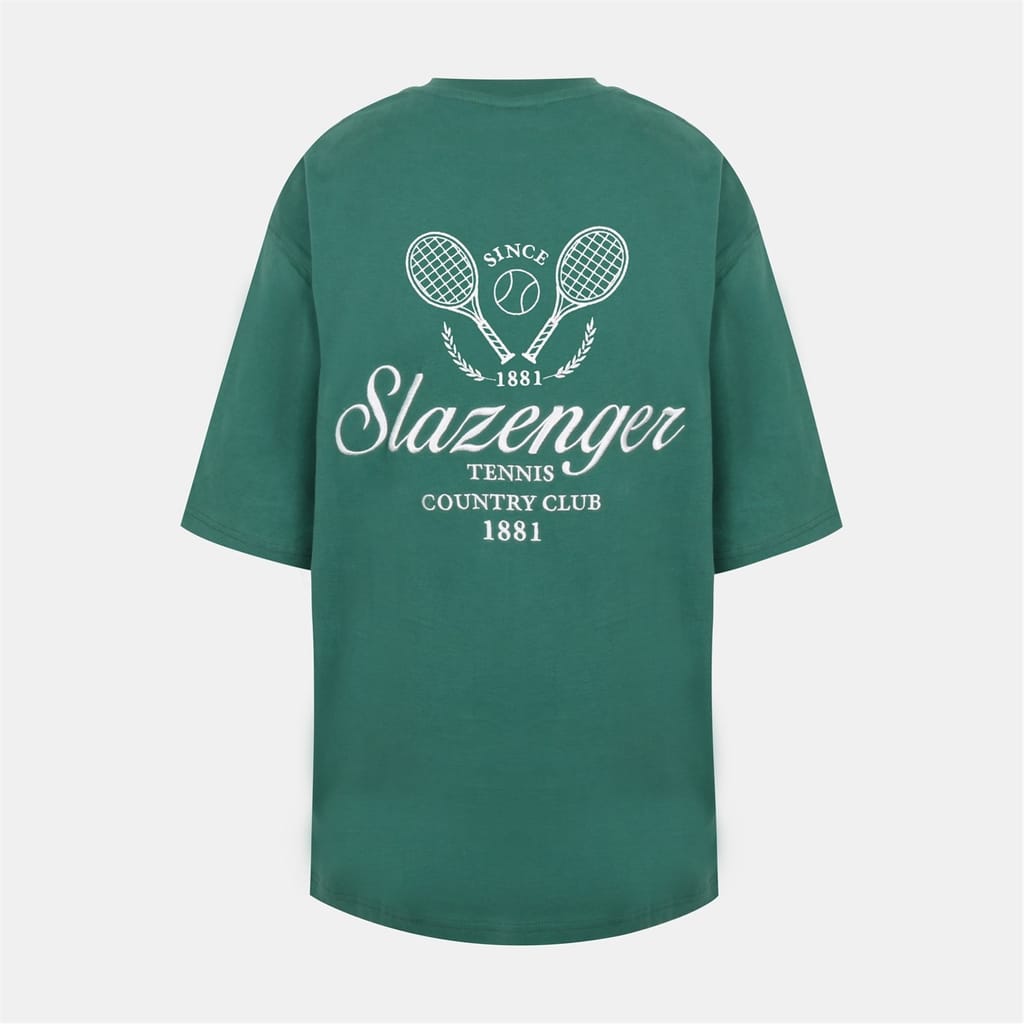 This Slazenger top is perfect for casual wear, featuring an oversize fit and short sleeves. The crew neck design is complemented by a graphic print and an embroidered logo, adding a touch of style to your wardrobe. -