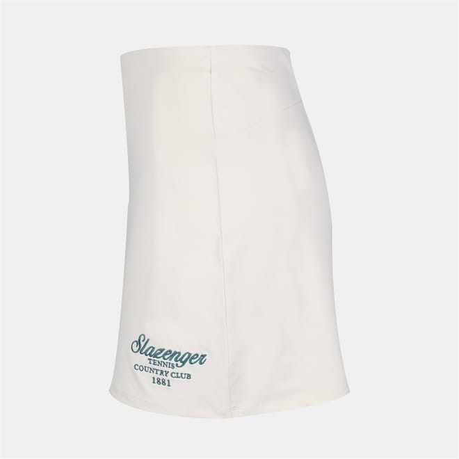 This Slazenger mini tennis skort is designed for sporting activities, offering a slim fit for a sleek silhouette. The skort features a prominent logo embellishment, adding a touch of brand identity to your athletic ensemble. -