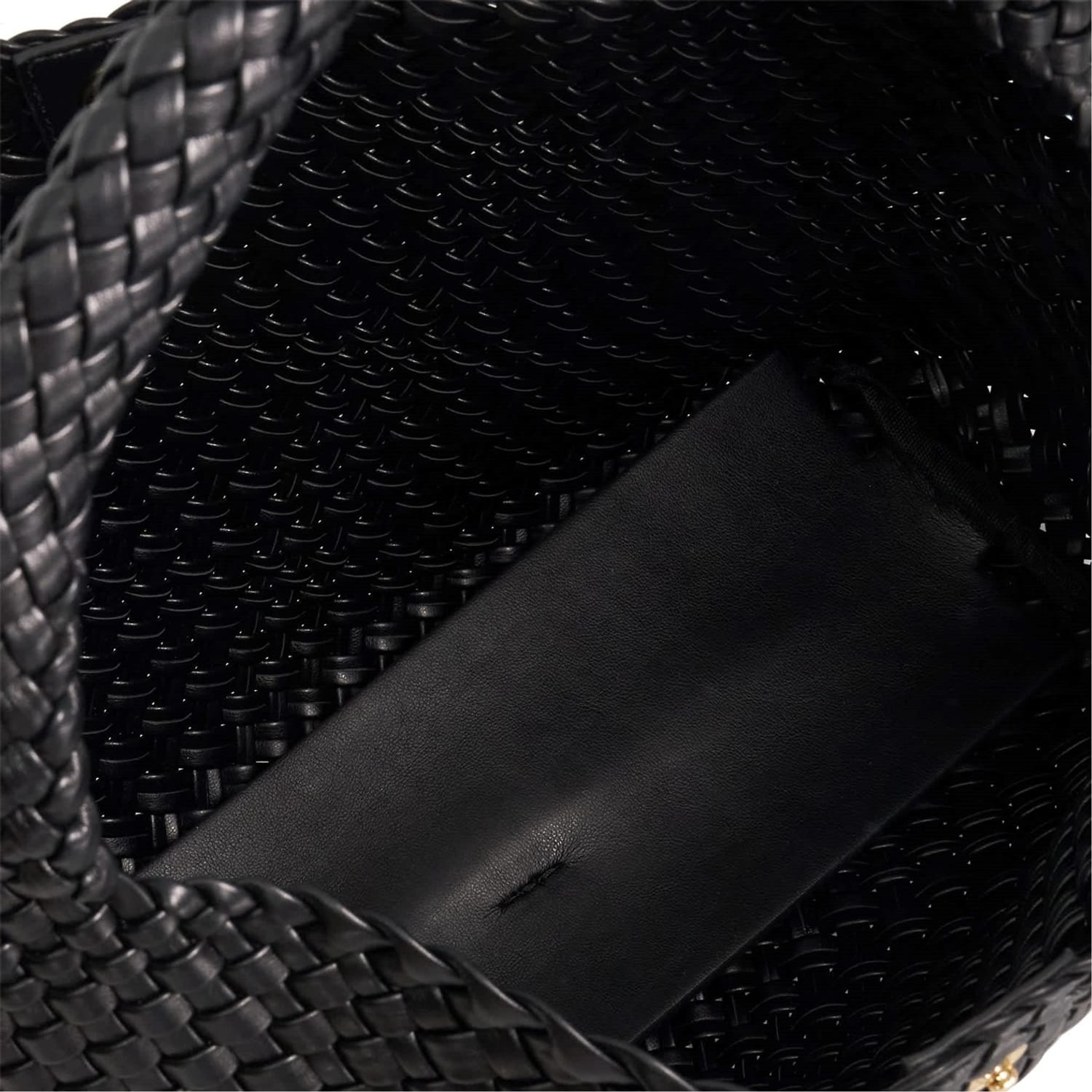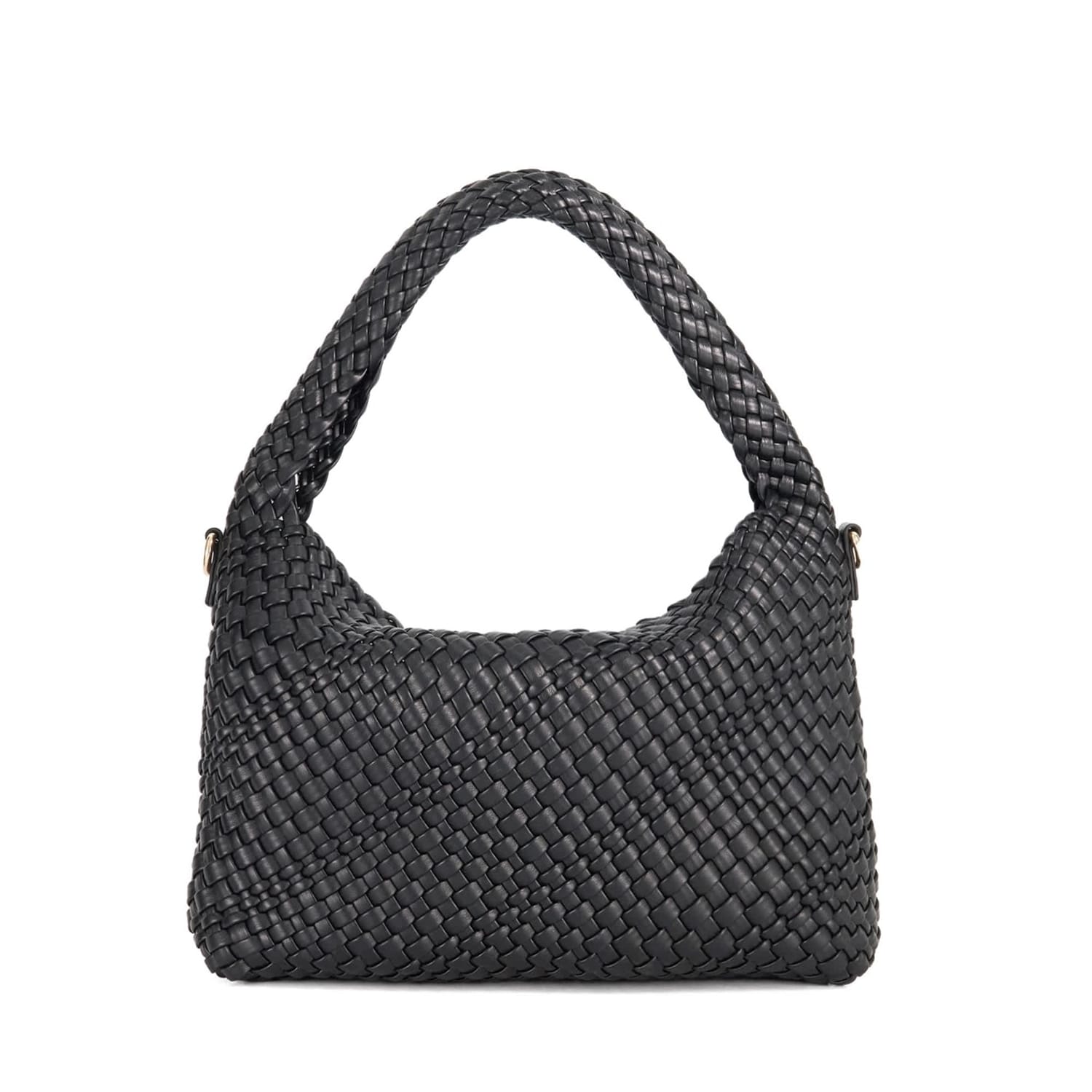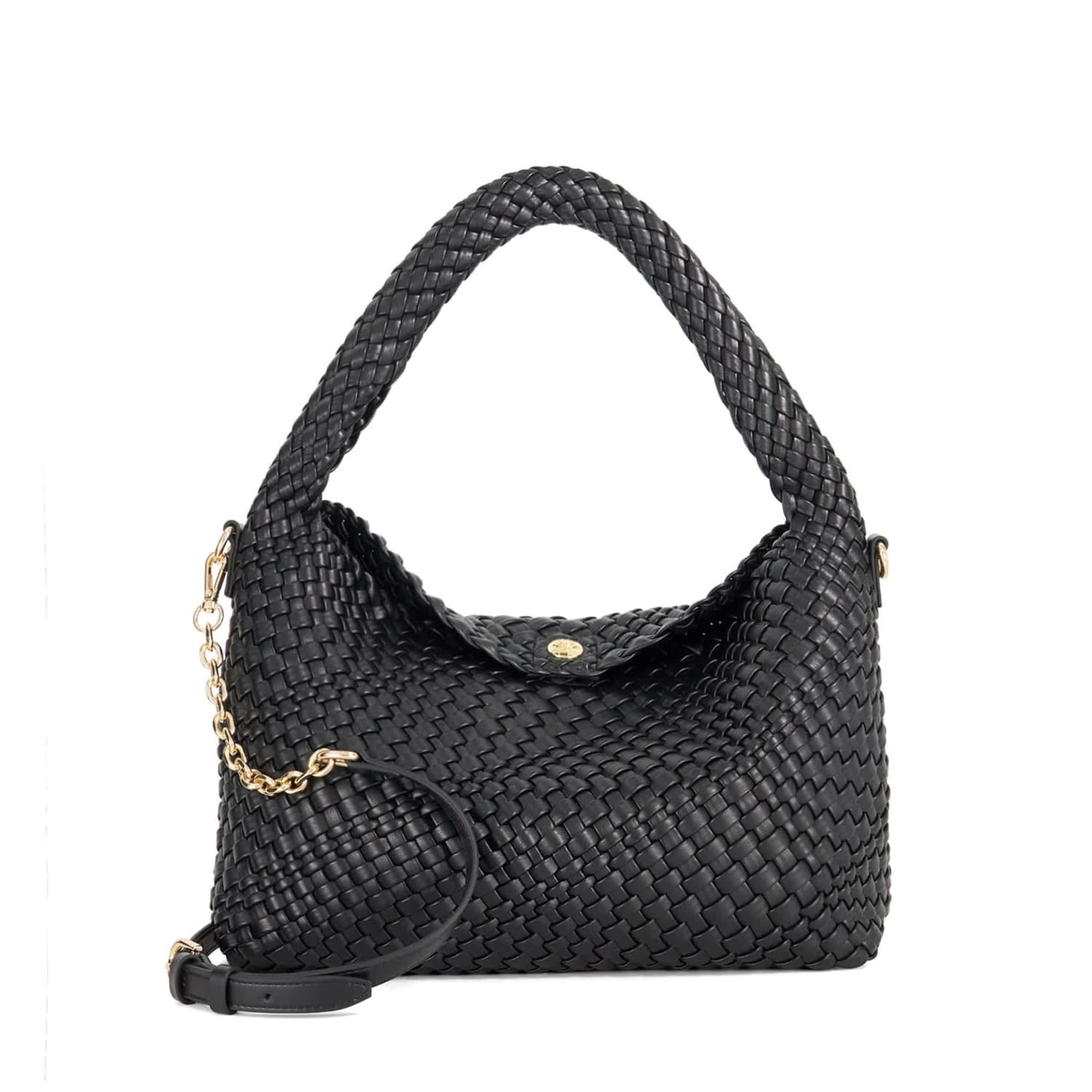 Discover the Dune London hobo bag, a stylish addition to your collection. Featuring a basket weave pattern, this bag is adorned with a chic chain embellishment. It offers a convenient snap button closure and a comfortable shoulder handle, making it both practical and fashionable for any occasion. -