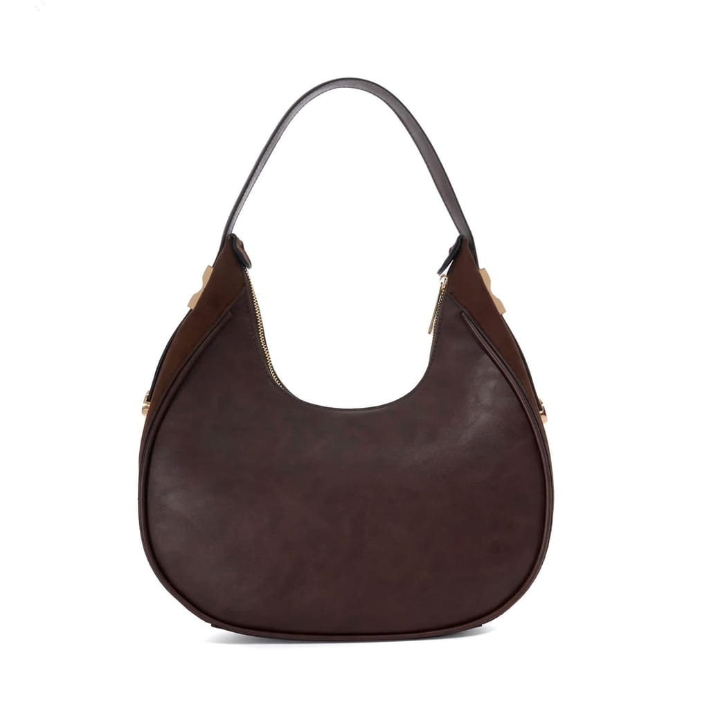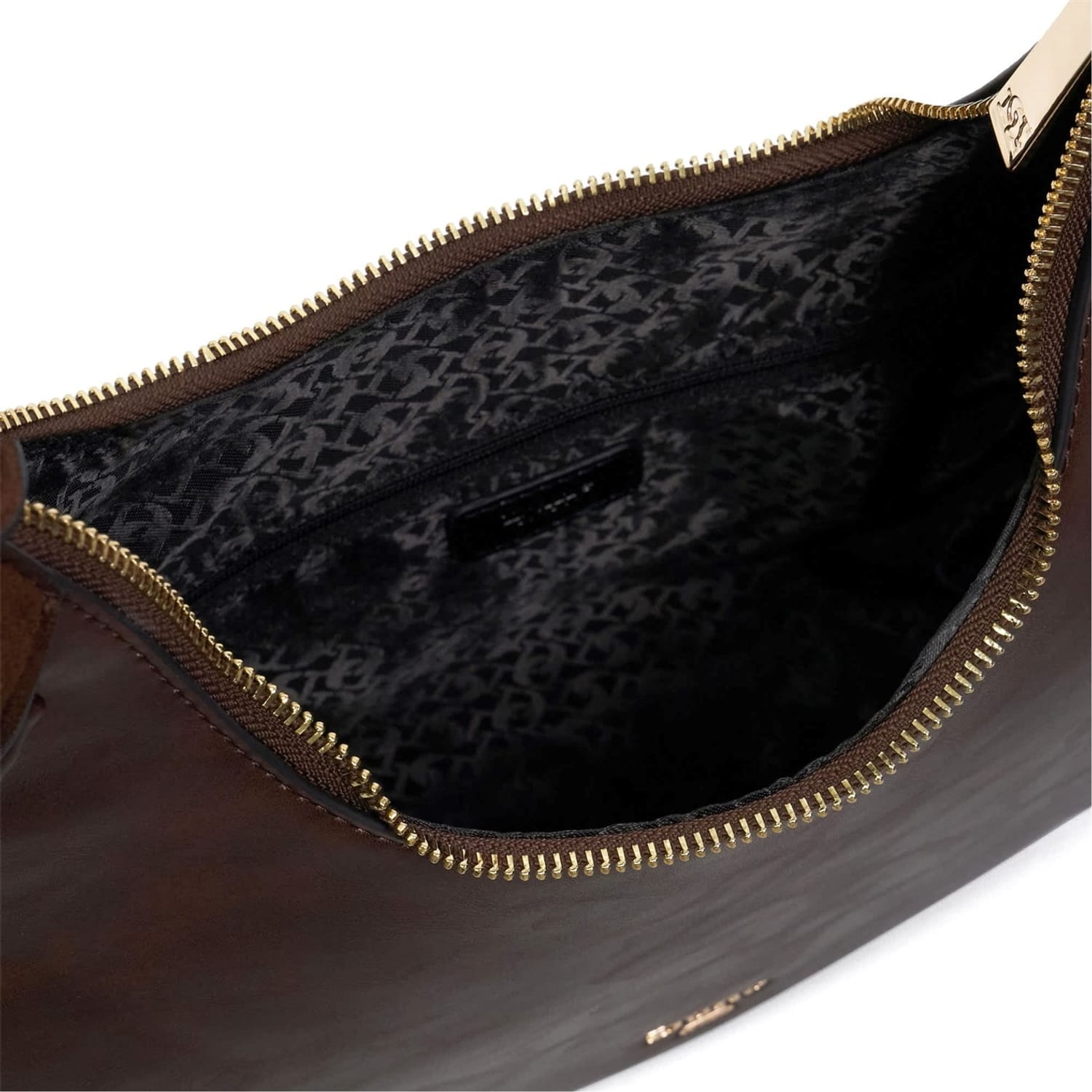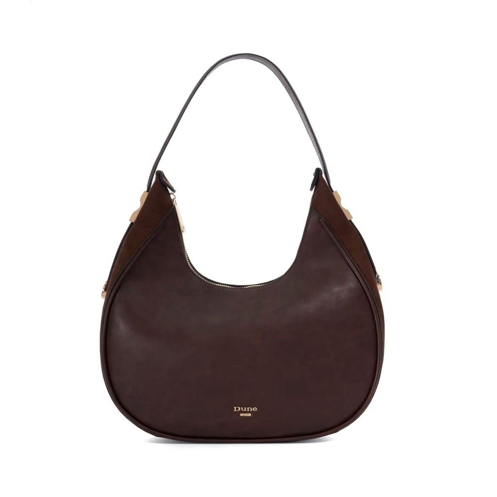Discover the Dune London hobo bag, a stylish addition to your collection. This bag features a secure zipper closure and a comfortable shoulder handle for easy carrying. The design is elegantly finished with a logo embellishment, adding a touch of sophistication to your ensemble. -