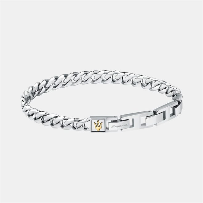 Sleek chain styling defines the Maserati Jewellery Men's Maserat Chain Bracelet, engineered with precision detailing and metalwork for a masculine look that complements any fashion outfit.
