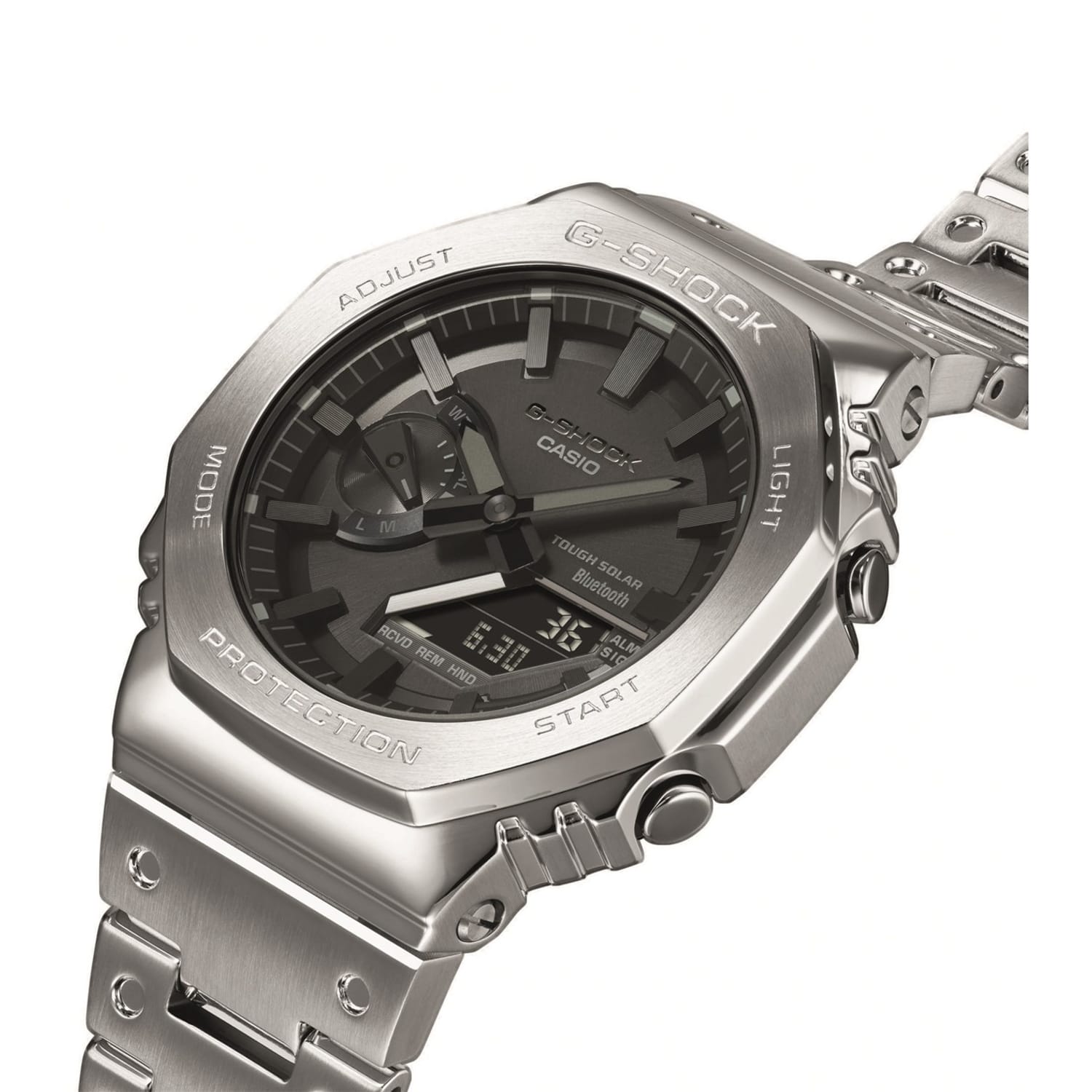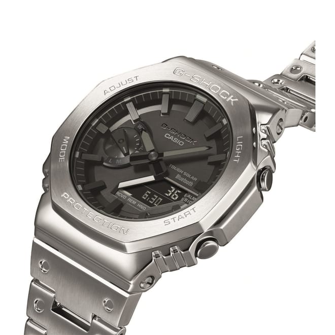 - The full-metal construction with a screw-back case, bezel, and band crafted in stainless steel creates a streamlined, minimalist design, while protecting the module from impact when dropped. We take it way back with the octagonal bezel and dimpled band design of the original from 1983, all done in metal.