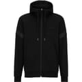 This Boss sweatshirt jacket features a hooded design with a zipper closure, offering a practical and stylish option for cooler days. The regular fit ensures comfort, while the ribbed cuffs and hem provide a snug finish. The solid pattern is complemented by a subtle logo embellishment, adding a touch of brand identity to this versatile piece. -