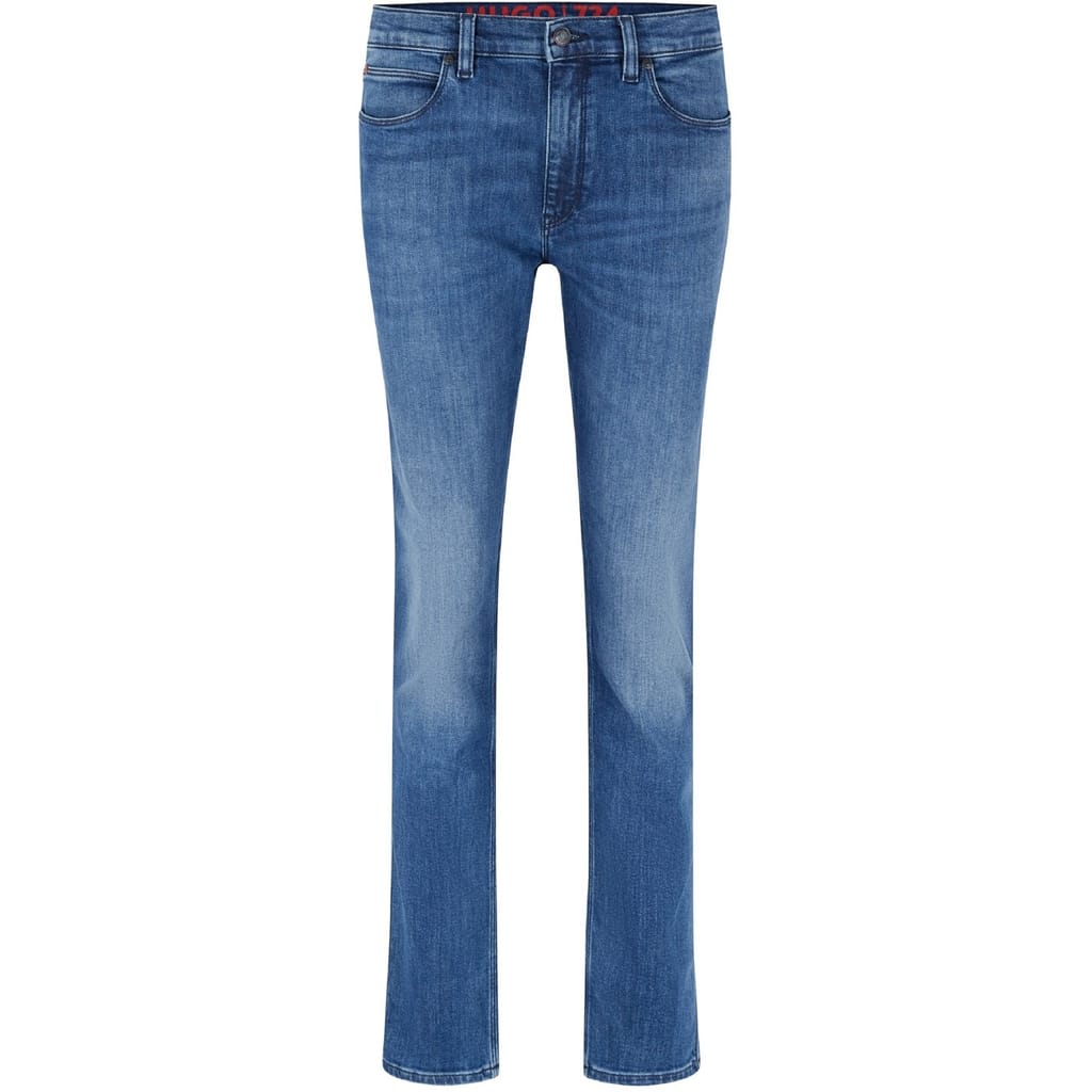 Discover the Hugo five-pocket design jeans, featuring a sleek skinny fit. These jeans come with a practical zip fly and button closure, ensuring a secure fit. The subtle logo embellishment adds a touch of brand identity, making these jeans a stylish addition to your wardrobe. -