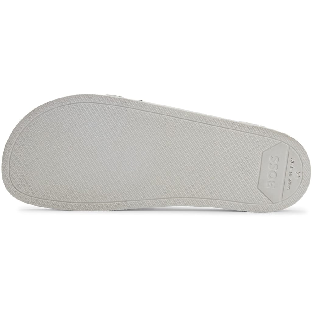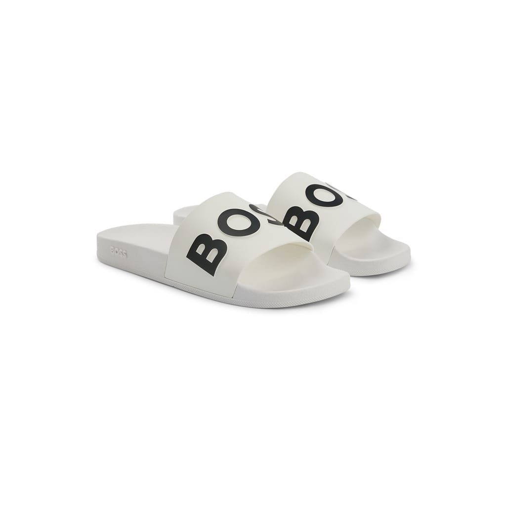 Discover the Boss slides, a stylish addition to your footwear collection. These open-toe sandals feature a distinctive logo print, offering a modern touch to your look. Perfect for casual outings, these slides combine comfort and style effortlessly, making them an ideal choice for warm weather. -