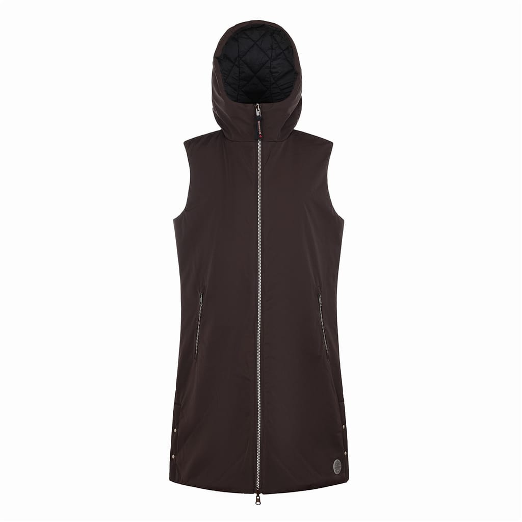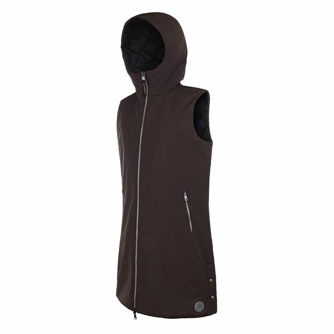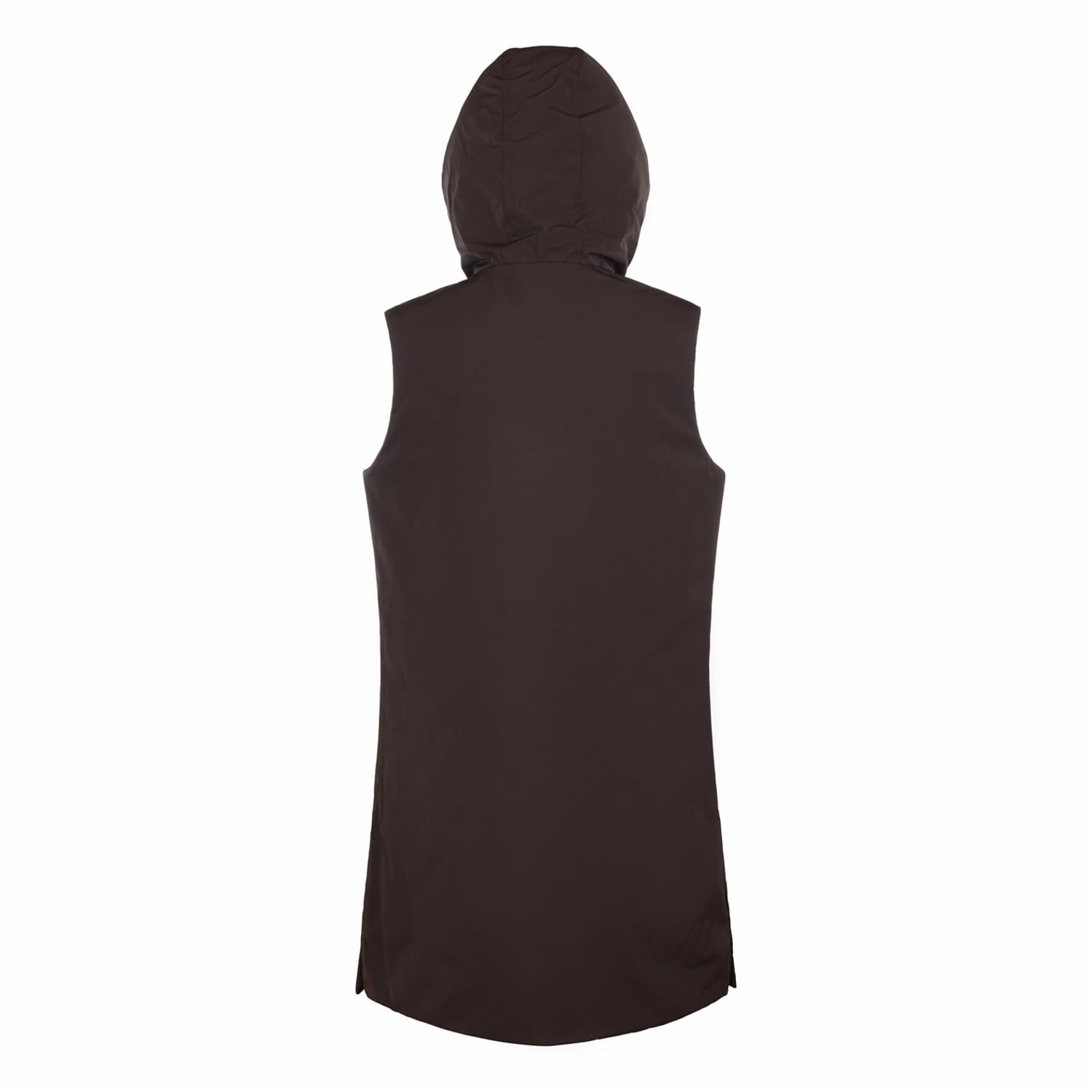 Discover the Museum gilet, a stylish sleeveless piece with a hooded neckline. This solid design features a practical zipper closure and a curved hem, offering a sleek and modern look. Perfect for layering, this gilet combines functionality with contemporary style. -