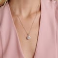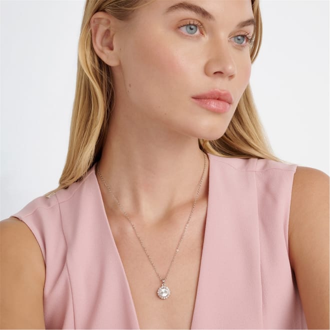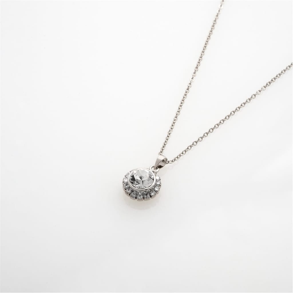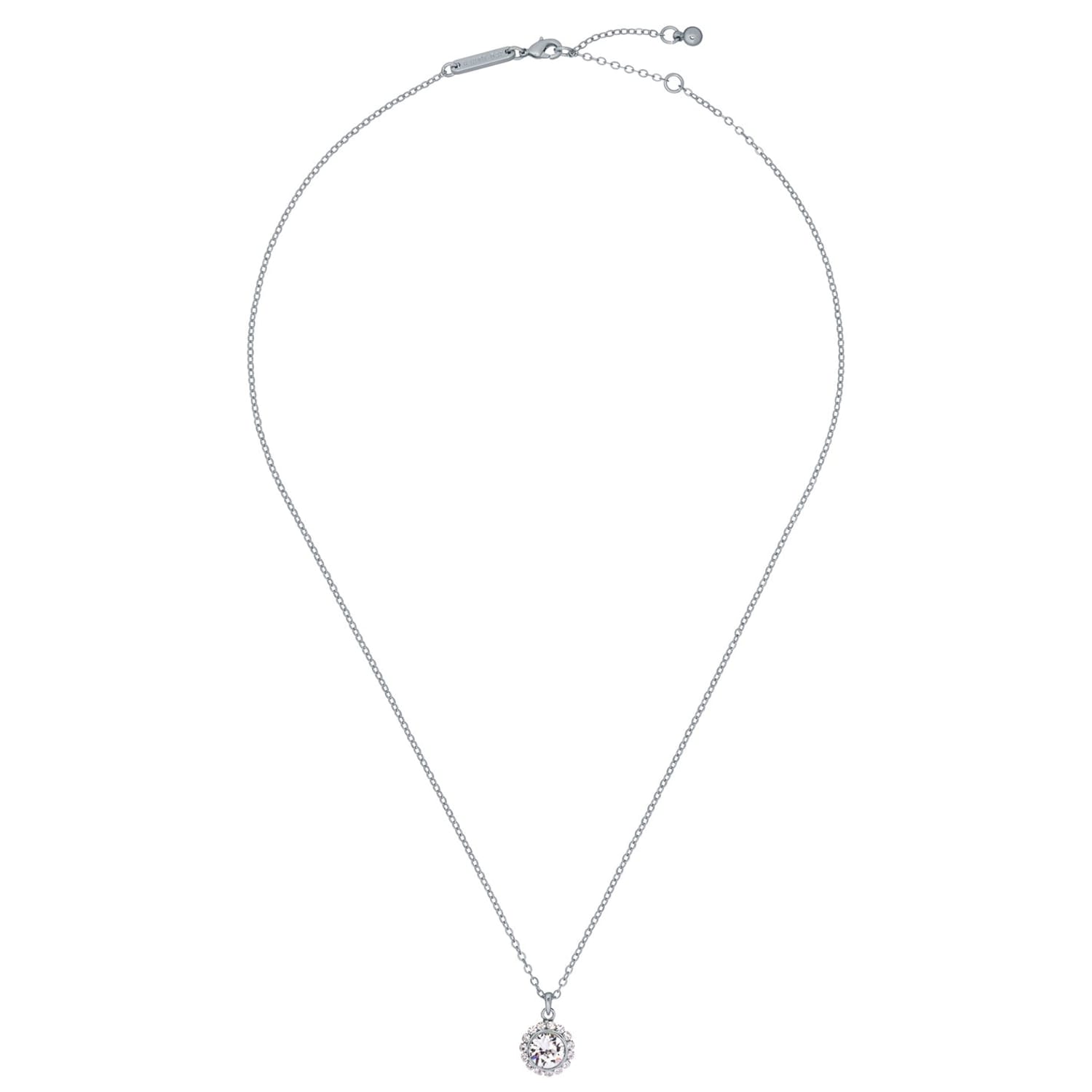 Discover the elegance of Ted Baker's pendant necklace, a stunning piece of jewellery featuring a round shape adorned with cubic zirconia. This exquisite necklace showcases a pendant style, embellished with crystals and a delicate chain, making it a timeless addition to any collection. -
