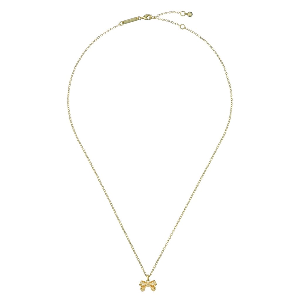 Discover the Ted Baker pendant necklace, a stunning piece of jewellery that combines elegance with charm. This necklace features a delicate chain adorned with a charming bow embellishment, adding a touch of sophistication to any ensemble. Perfect for those who appreciate refined style, this necklace is a testament to Ted Baker's commitment to quality and design. -
