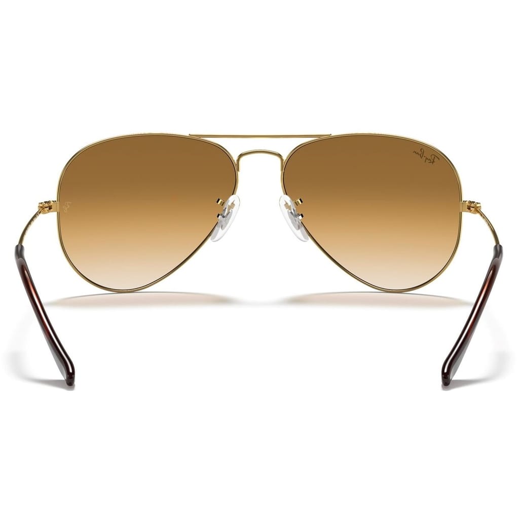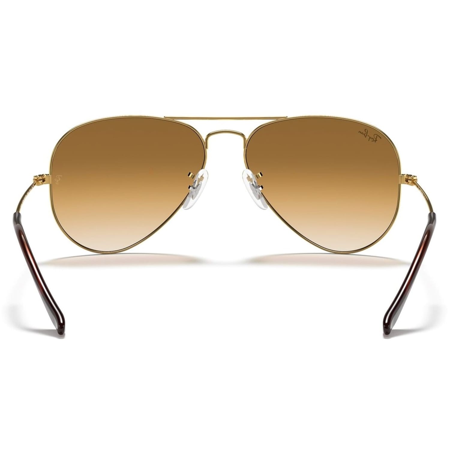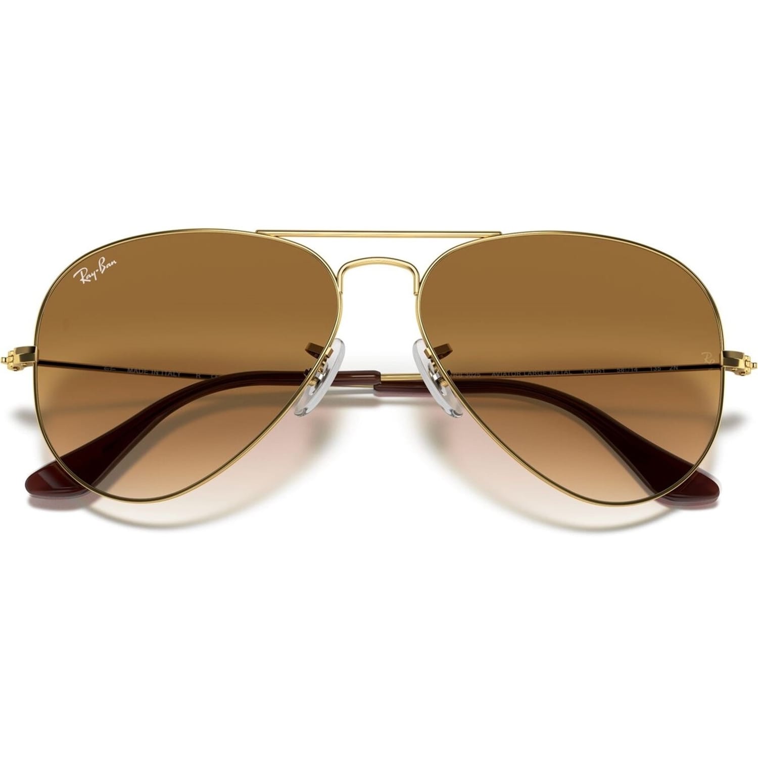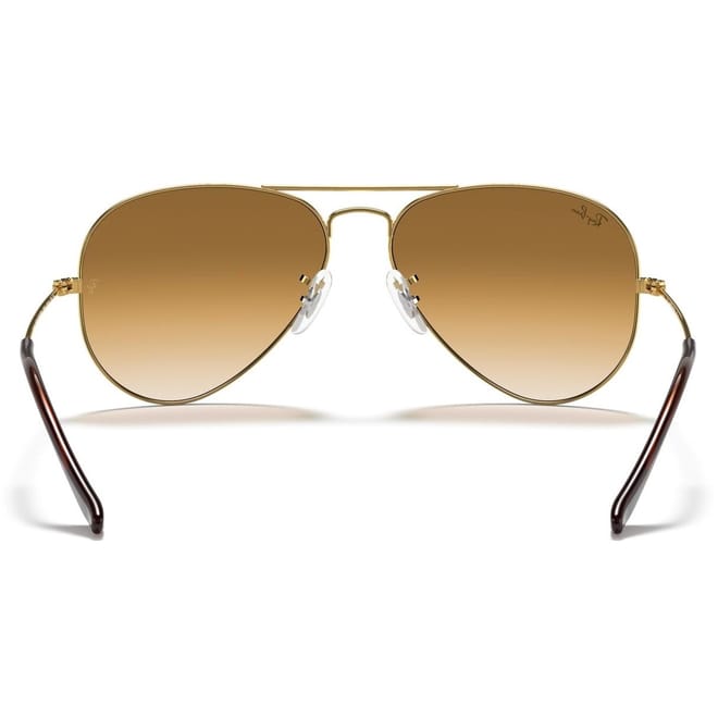 Ray-Ban sunglasses offer a classic aviator style with a full rim design. Crafted from durable metal, these sunglasses feature a double bridge for added support. The gradient pattern lenses provide 100% UV protection, ensuring your eyes are shielded from harmful rays. The iconic logo embellishment adds a touch of authenticity to this timeless accessory. -