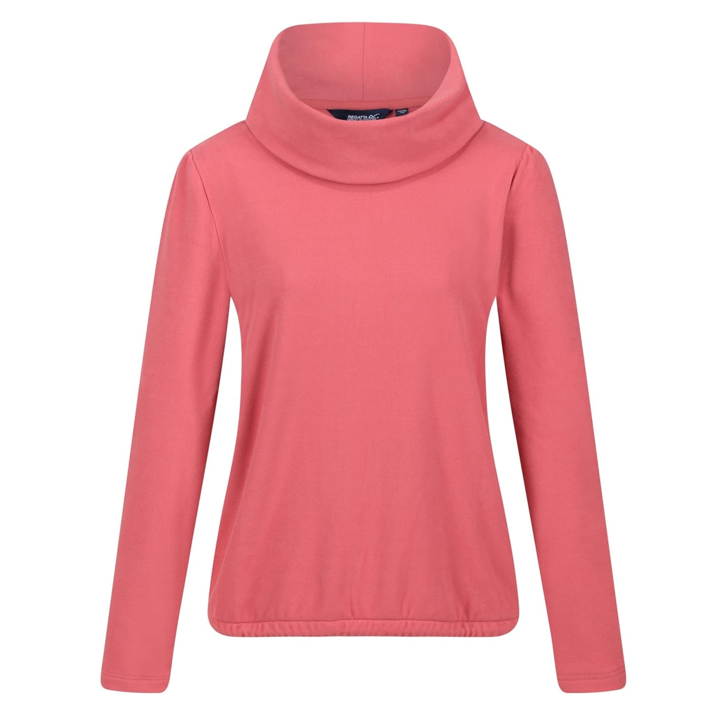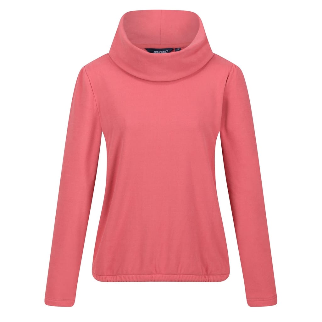 This Regatta top is a casual essential featuring a cowl neck and long sleeves. Crafted in a solid pattern, it offers a regular fit for comfort. The top includes a full zipper closure and is adorned with a logo embellishment, adding a subtle touch of brand identity. -