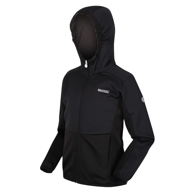 This Regatta top features a hooded neck and long sleeves, offering a regular fit for comfort. The solid pattern is complemented by an elasticated cuff, while the front zipper closure adds practicality. A subtle logo embellishment completes the design, making it a versatile addition to your wardrobe. -