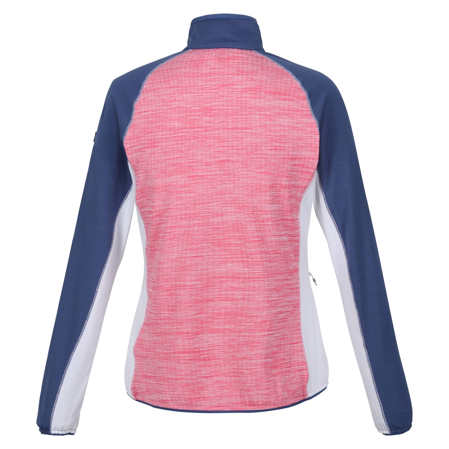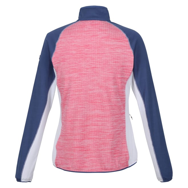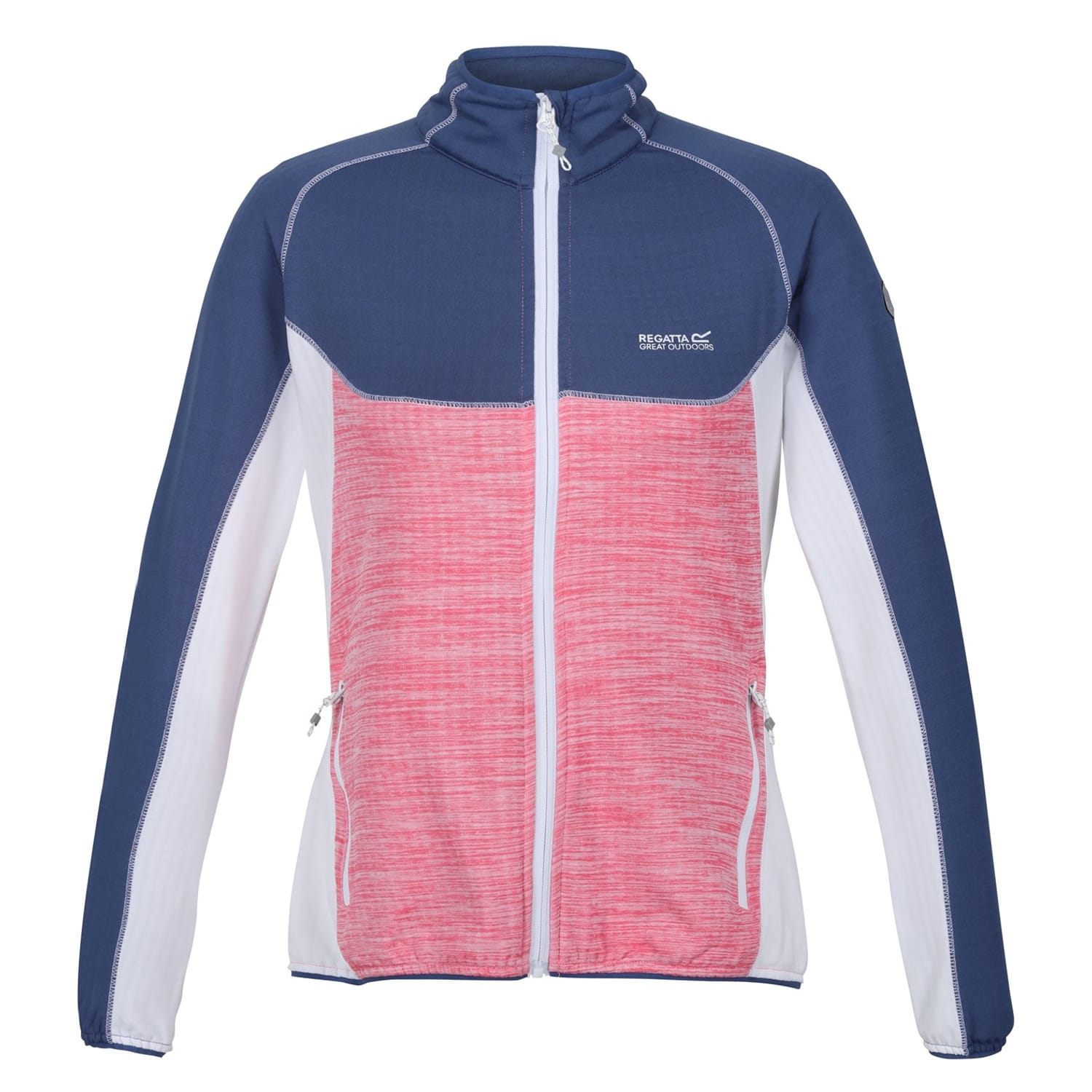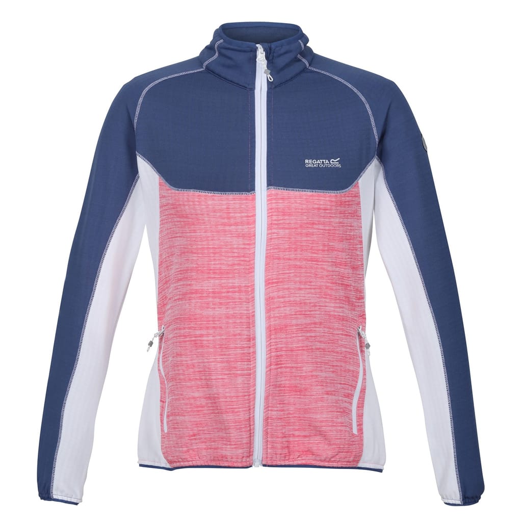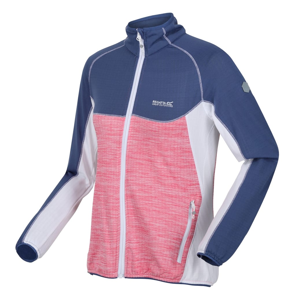 Discover Regatta's activewear top, featuring a heathered pattern and a funnel neck. This long-sleeve design includes a convenient front zipper and raglan sleeves for enhanced movement. The regular fit ensures comfort, while ribbed cuffs add a touch of style. Embellished with a logo and pocket, this top is perfect for those seeking both functionality and fashion. -