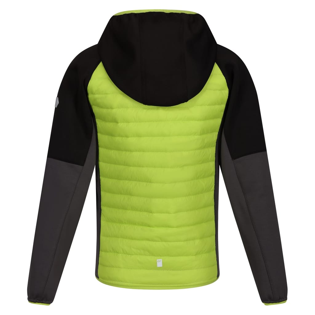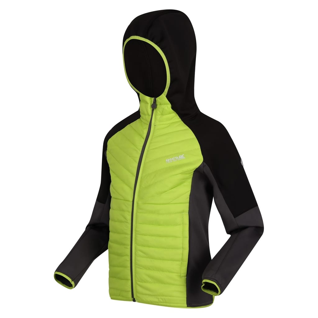 This Regatta hybrid jacket features a hooded neckline and a water-repellent finish, making it ideal for unpredictable weather. The color block design adds a modern touch, while the raglan sleeves and ribbed cuffs ensure comfort and flexibility. A zipper closure provides easy wear, and the regular fit offers a classic silhouette. The jacket is completed with a subtle logo embellishment for a touch of brand identity. -
