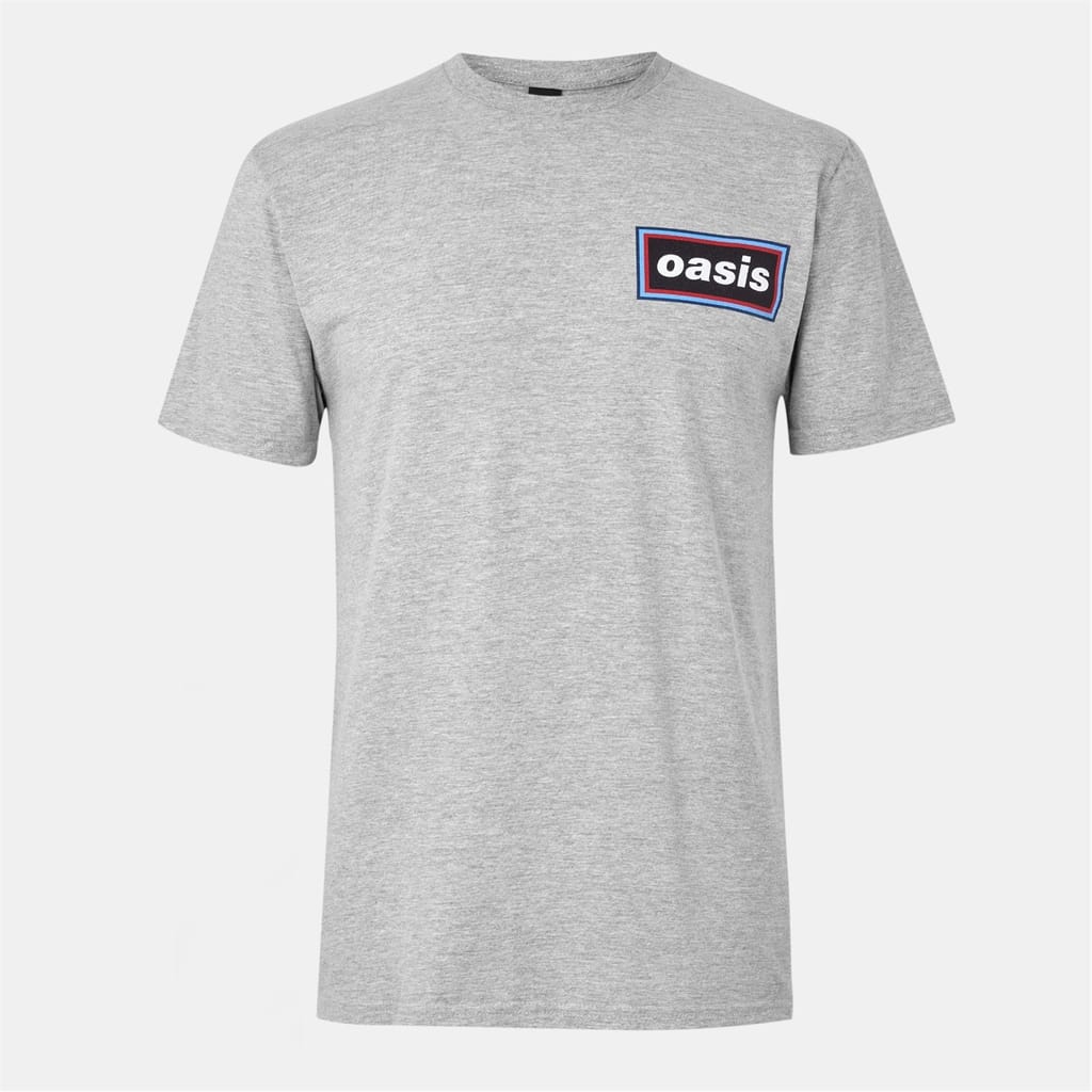 The Official Oasis top features a regular fit with a classic crew neck and short sleeves. Its solid pattern is complemented by a subtle logo embellishment, offering a clean and understated look. -