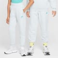 Take your young one's sporty attire to the next level with the Nike Fleece Jogging Bottoms. Crafted from a blend of cotton and polyester, with a fleece lining, these joggers offer comfort and warmth. The regular fit and full-length with elasticated cuffs provide a classic appeal, while the elasticated waistband with an internal drawcord ensures a secure and customisable fit.