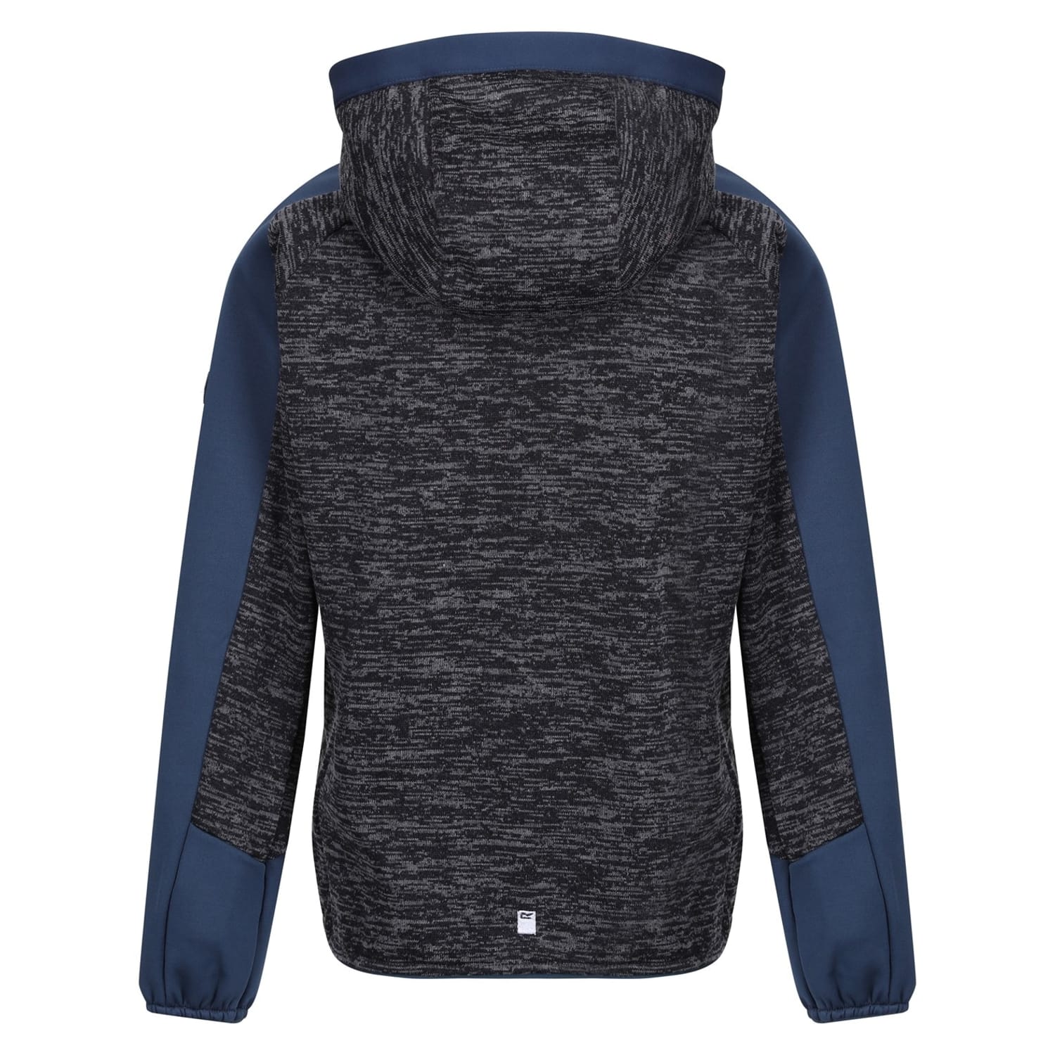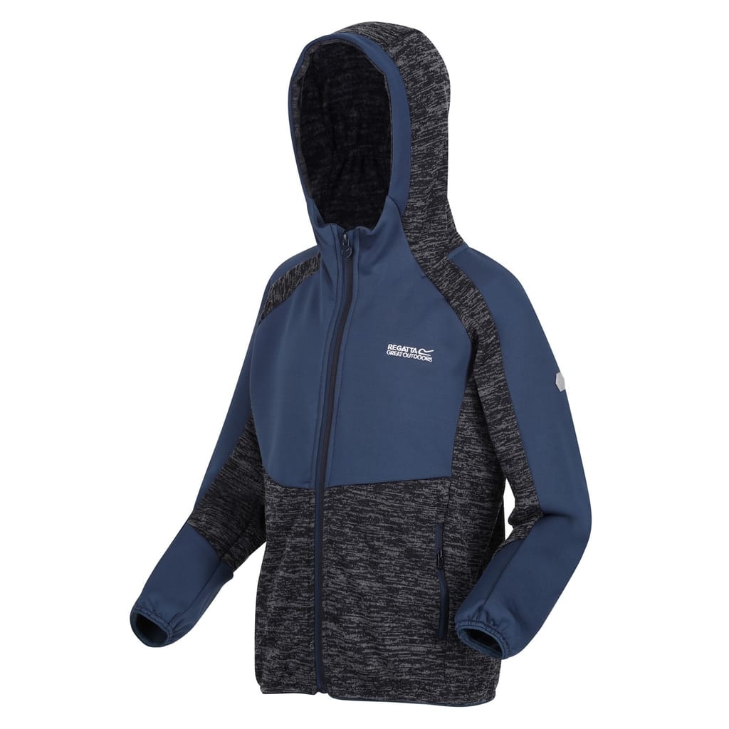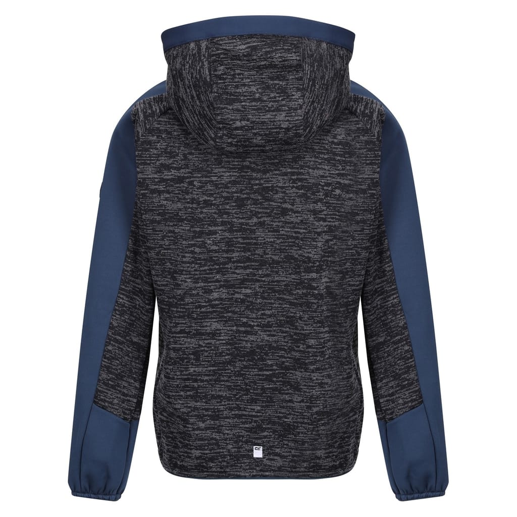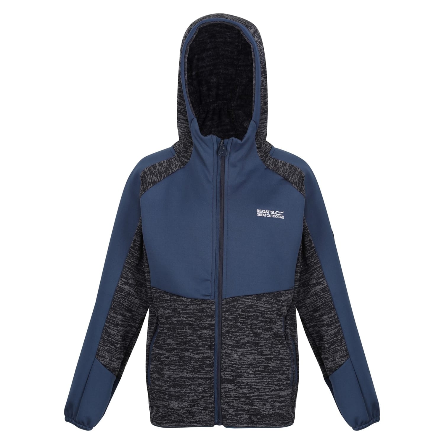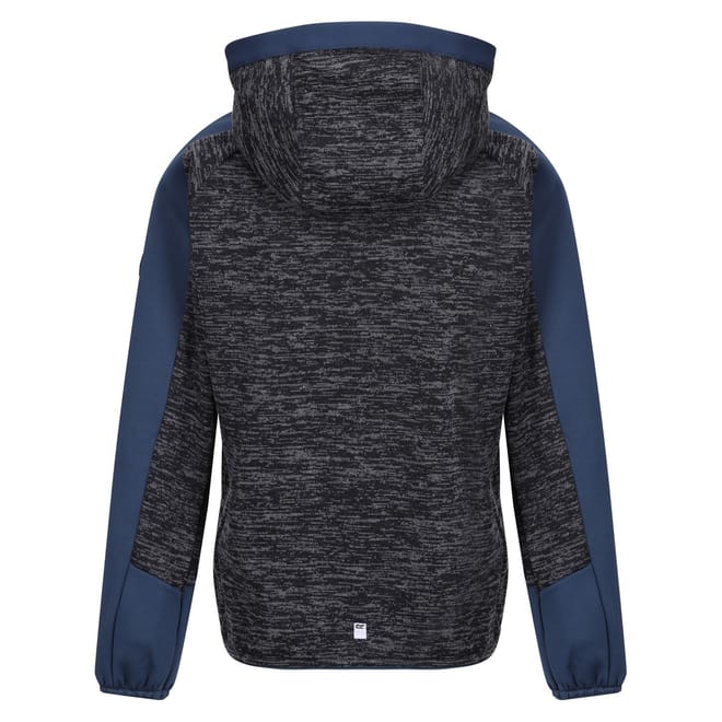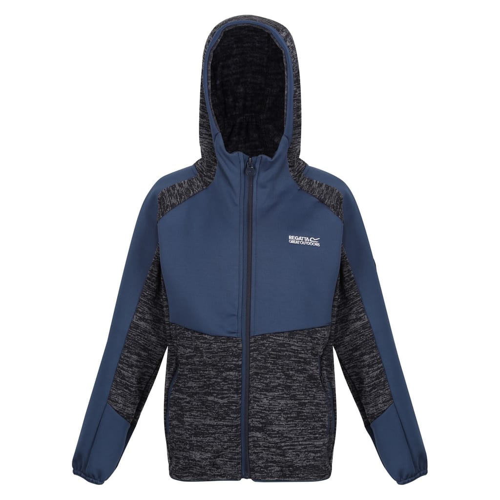 This Regatta top features a hooded neck and long raglan sleeves, offering a regular fit for casual wear. The marled pattern adds a stylish touch, while the elasticated cuffs ensure comfort. A front zipper closure provides practicality, and the logo embellishment adds a subtle brand detail. -