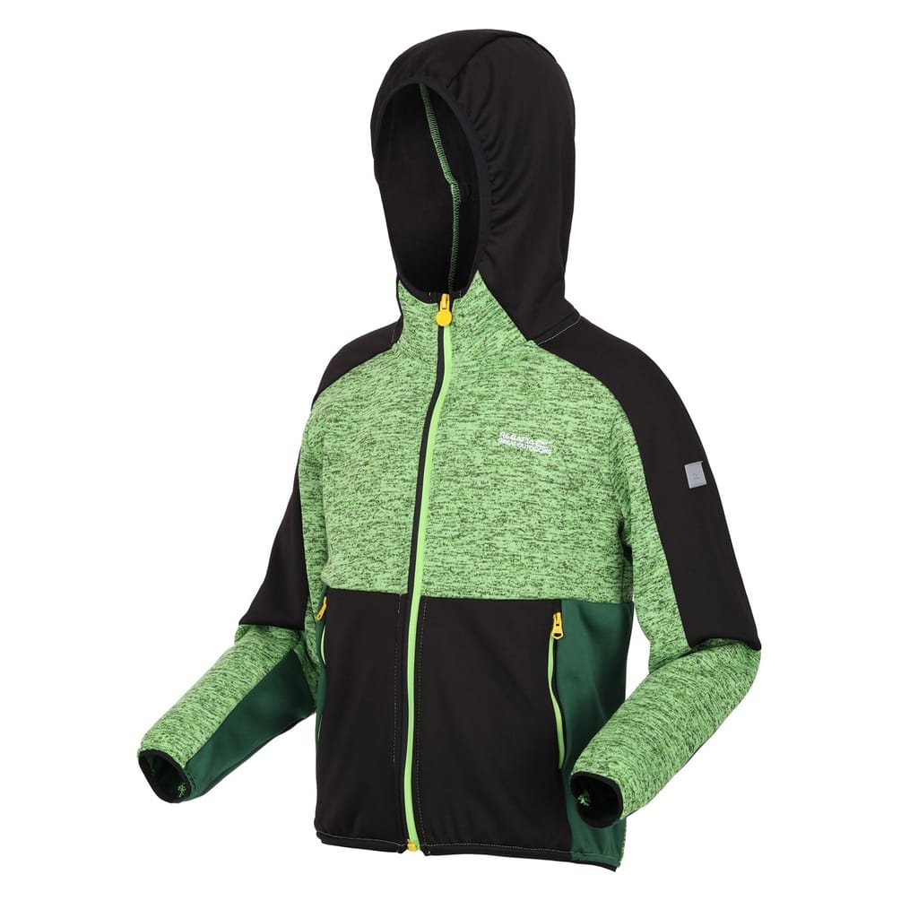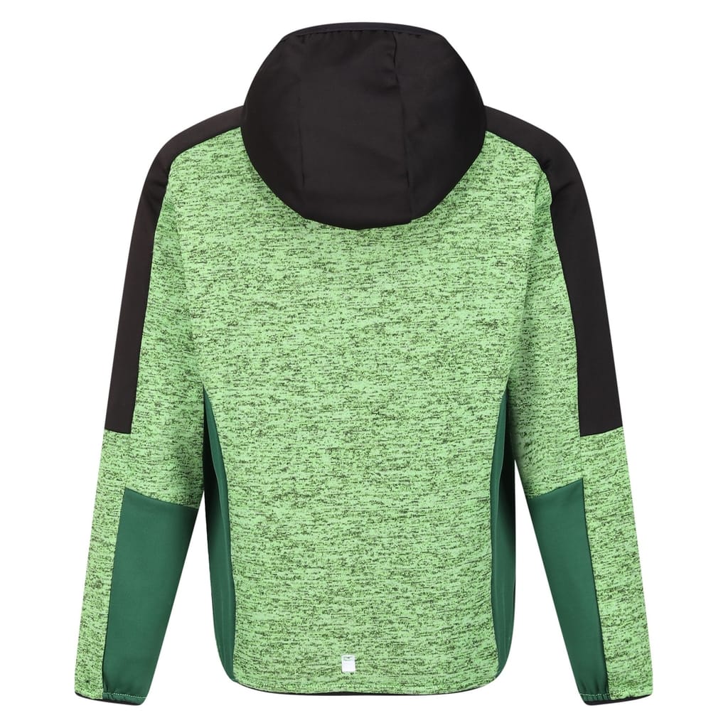 This Regatta top features a hooded neck and long sleeves, offering a regular fit. The marled pattern adds a touch of style, while the elasticated cuffs ensure comfort. A front zipper closure provides practicality, and the logo embellishment adds a subtle brand touch. -