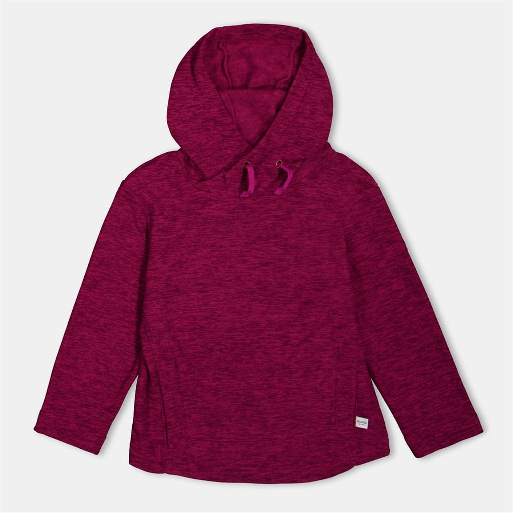 Discover Regatta's casual top, featuring a heathered pattern and a hooded neck. This long-sleeve design offers a regular fit with raglan sleeves for added comfort. The top includes a practical pocket and a drawstring closure, making it a versatile addition to your wardrobe. -
