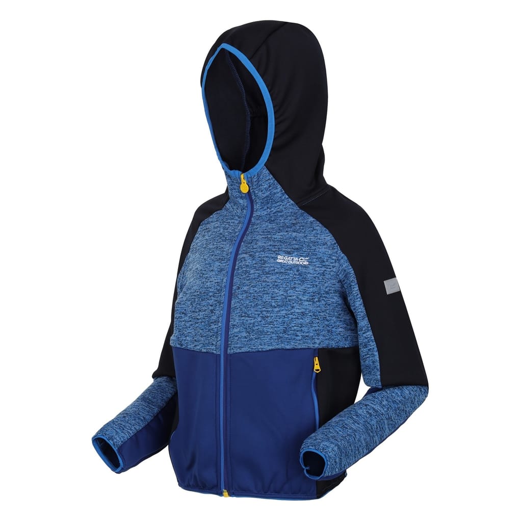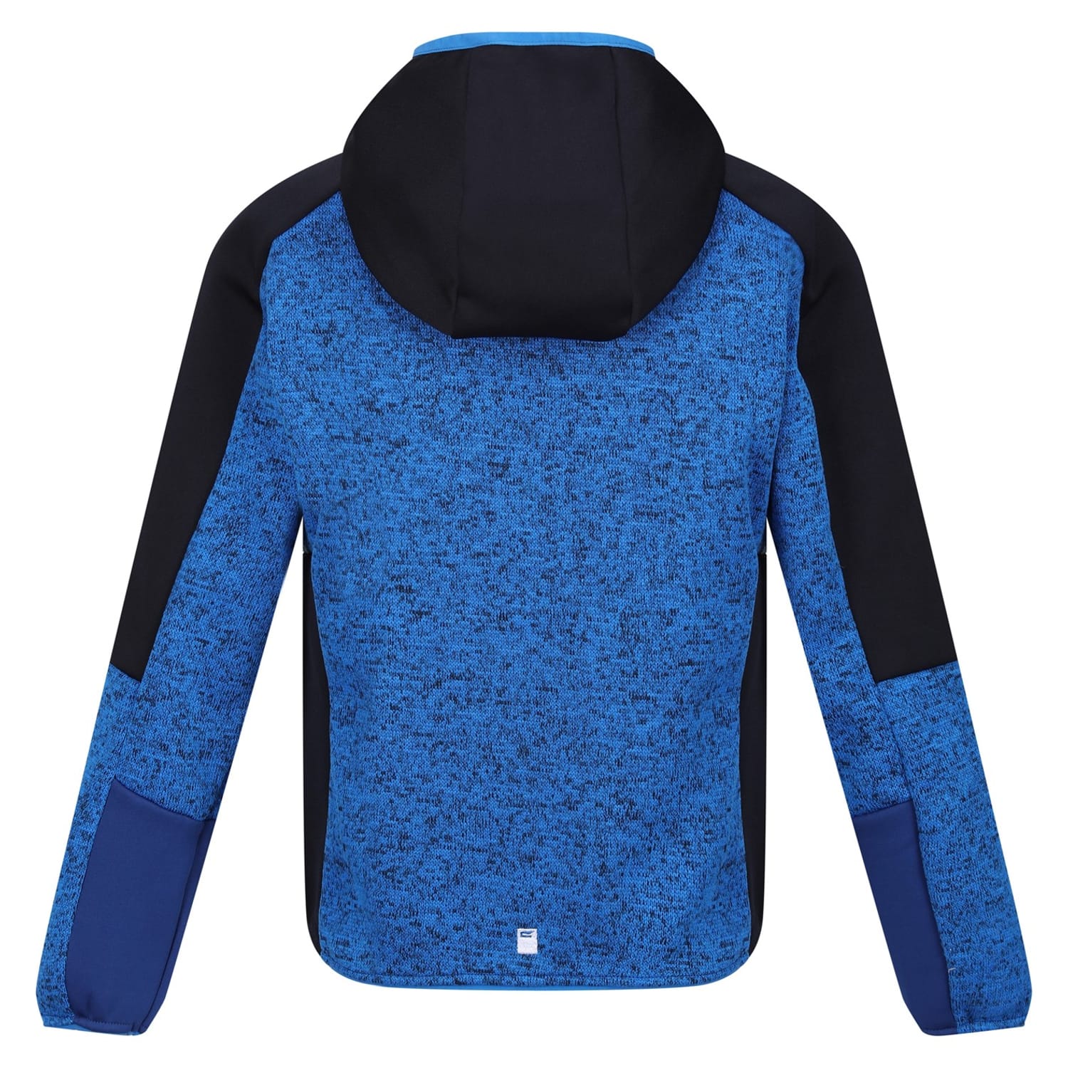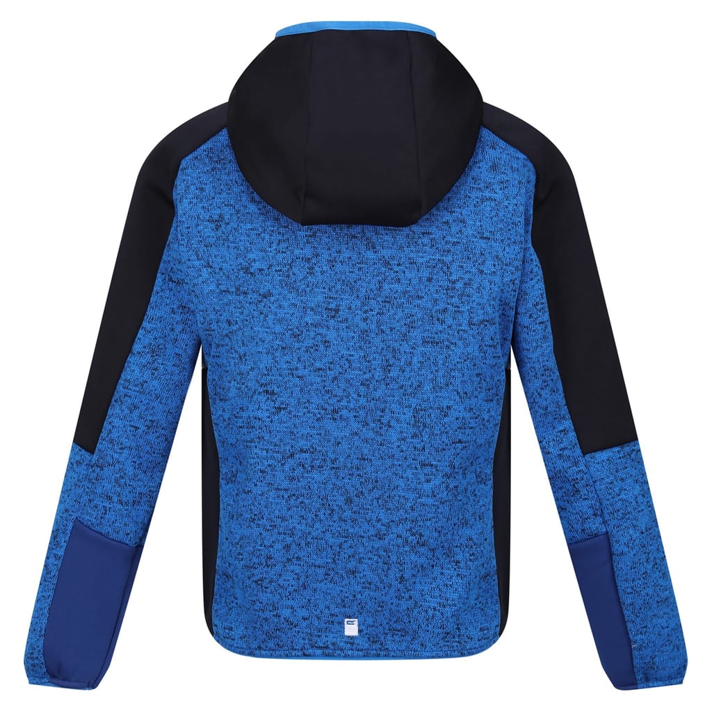 This Regatta top features a hooded neck and long sleeves, offering a regular fit. The marled pattern adds a touch of style, while the elasticated cuffs ensure comfort. A front zipper closure provides practicality, and the logo embellishment adds a subtle brand touch. -
