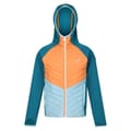 This Regatta hybrid jacket features a hooded neckline and a practical zipper closure. Designed with a raglan sleeve style, it offers an insulated layer for added warmth. The color block pattern adds a stylish touch, while the logo embellishment provides a subtle brand detail. -