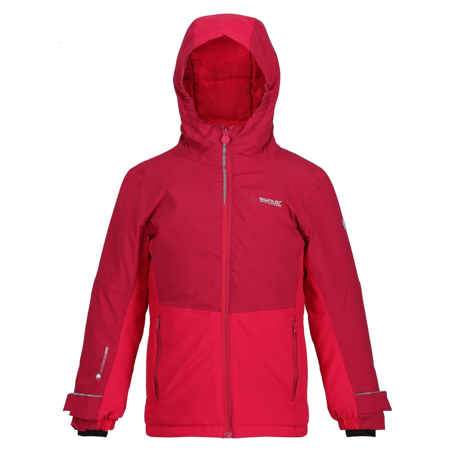 The Regatta ski jacket is designed for optimal performance in cold conditions. Featuring a hooded neckline and insulated construction, it ensures warmth and comfort. The jacket includes a zipper closure, elasticated cuffs, and a straight hem for a secure fit. With practical pockets and a subtle logo, this solid-patterned jacket combines functionality with a sleek, regular fit. -
