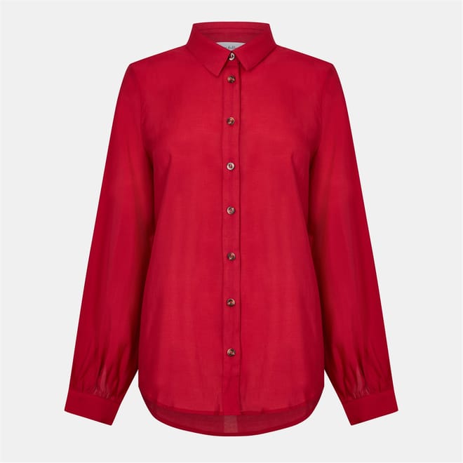 - Embrace the allure of the button-up design, gracefully enhanced by the subtle blouson sleeves and a pressed shirt collar that lends a touch of effortless charm. The delicate balance of a slight sheerness exudes a feeling of luxury, while the sturdy composition ensures practicality for your everyday ensemble.