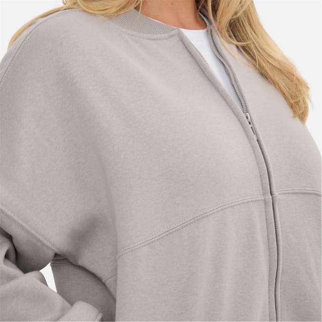 A sporty essential with a modern edge, this jersey jacket features a full zip front and a relaxed fit for easy layering. Soft, lightweight fabric offers all-day comfort, making it perfect for casual wear, workouts, or on-the-go style.