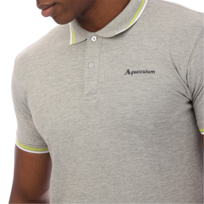 This Aquascutum top features a classic polo collar and short sleeves, offering a regular fit for casual occasions. The solid pattern is complemented by a button closure and ribbed cuffs. A subtle logo embellishment adds a touch of brand identity to this versatile piece. -