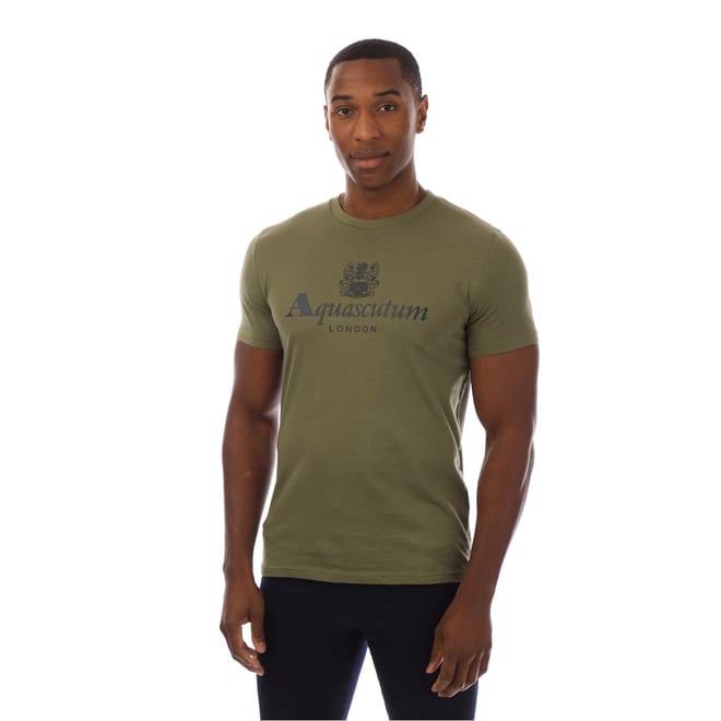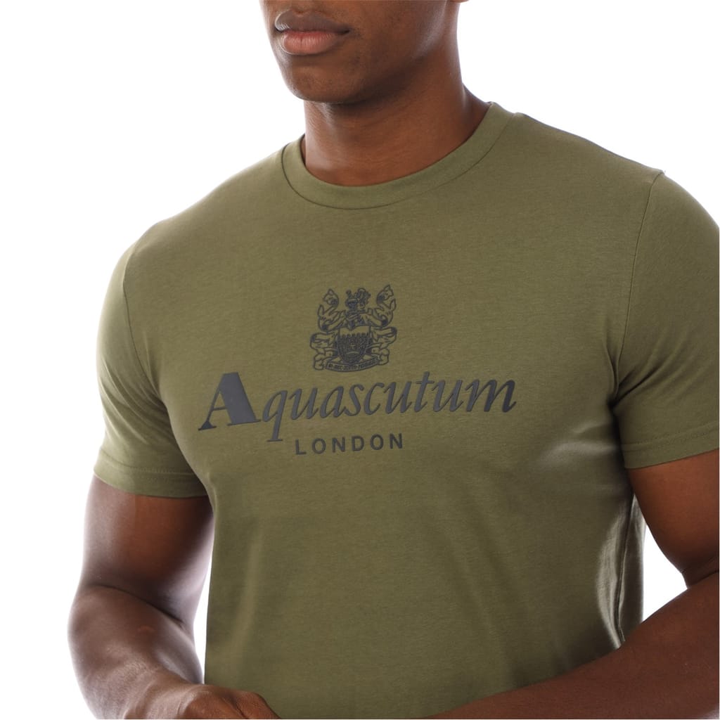 This Aquascutum top features a regular fit and short sleeves, perfect for casual wear. The crew neck design is complemented by a striking graphic print, adding a touch of style. A logo embellishment completes the look, making it a distinctive choice for any wardrobe. -