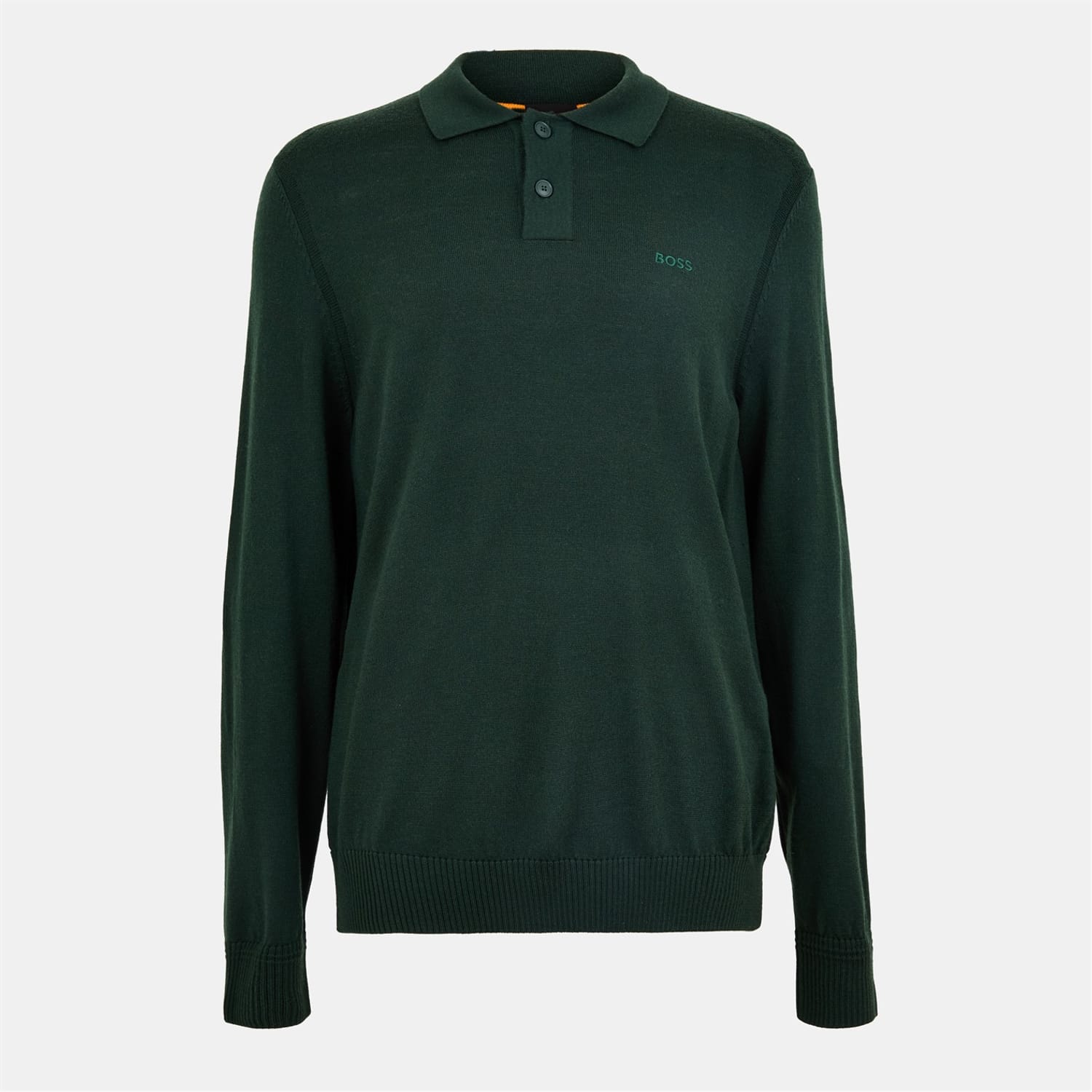 This Boss top features a classic polo collar and long sleeves, offering a regular fit for everyday comfort. The solid pattern and ribbed cuffs add a touch of sophistication, while the button closure ensures a secure fit. A subtle logo embellishment completes the casual collection piece, making it a versatile addition to any wardrobe. -